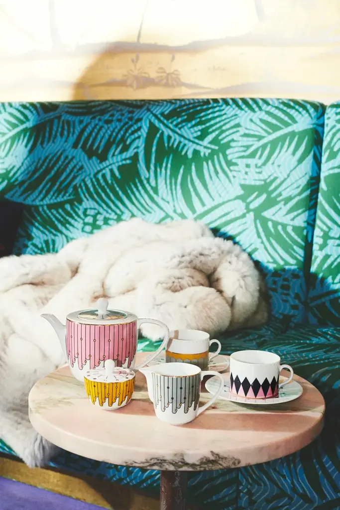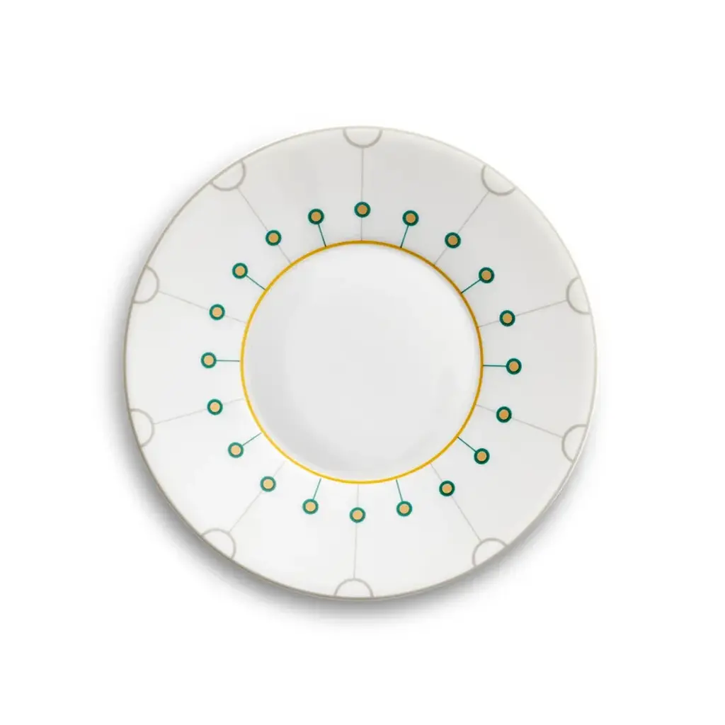 Golden Hour is a porcelain tea cup and saucer.Like the shimmering golden reflection of a sunset, the Golden Hour Teacup exudes an aura of opulence and splendor. Its generous dimensions and unique porcelain design, which combines shades of silver, green and gold, invite you to fully immerse yourself in the sacred ritual of tea. To remind us that this moment, like all the others, deserves to be lived to the fullest, with wonder and amazement. Turn every tea drinking experience into a fascinating chapter in your story of wonder.Material: porcelainColors: Green/Grey/Yellow/Gold