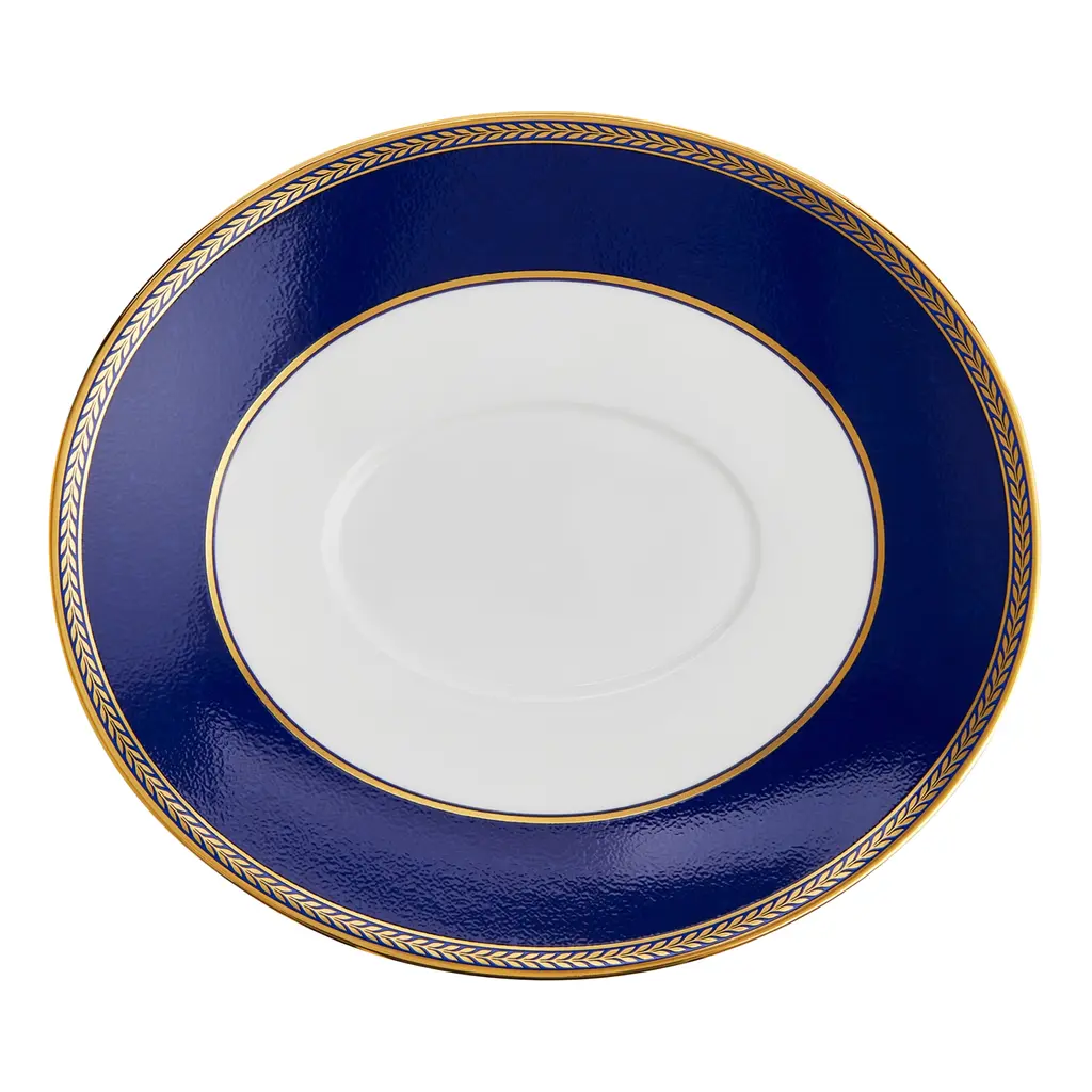 Originally created for use at the Royal Palace during the reign of Francis Joseph I, this striking pattern showcases a laurel wreath highlighted by lustrous 24k gold.