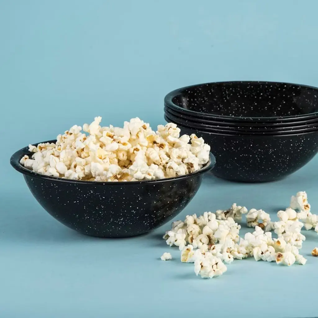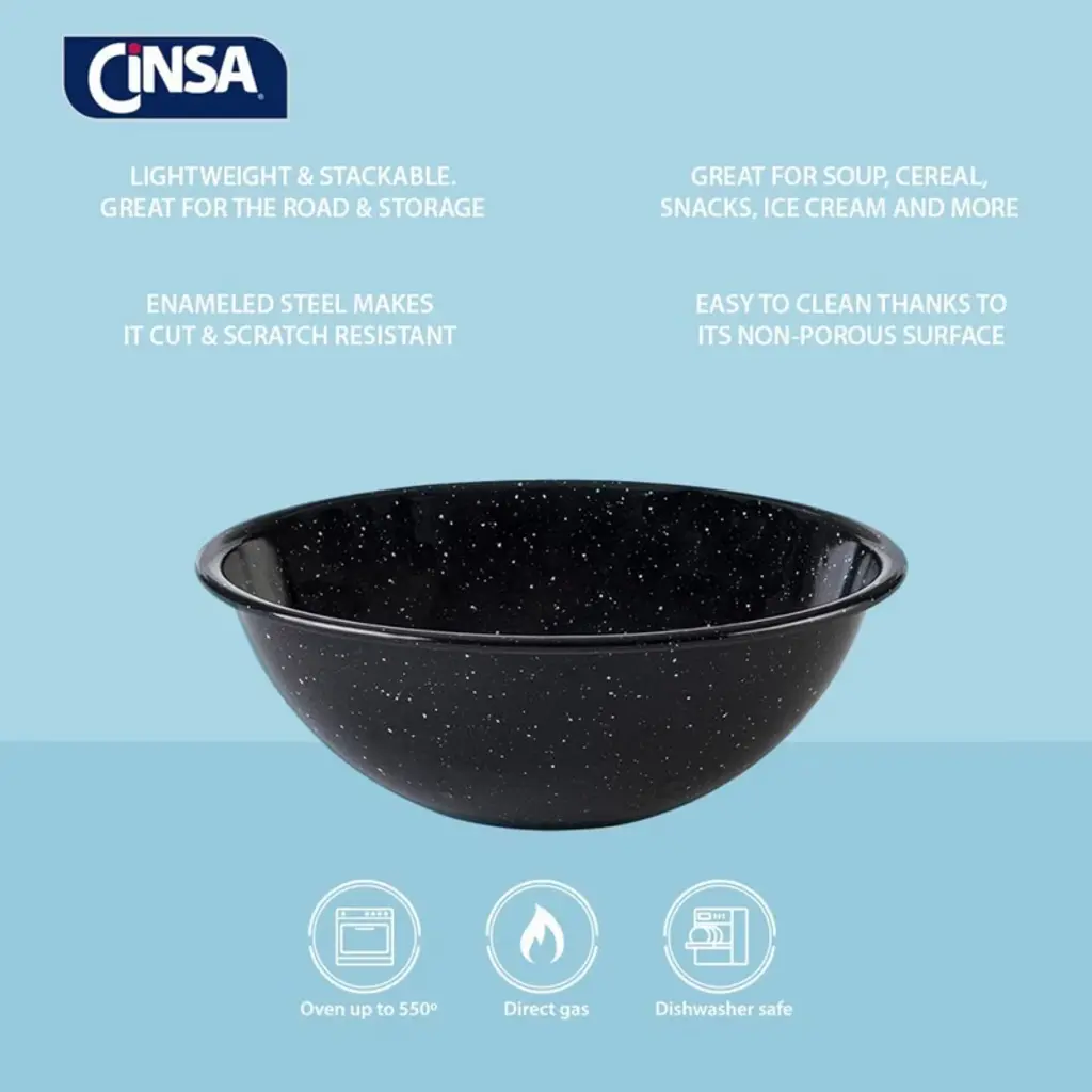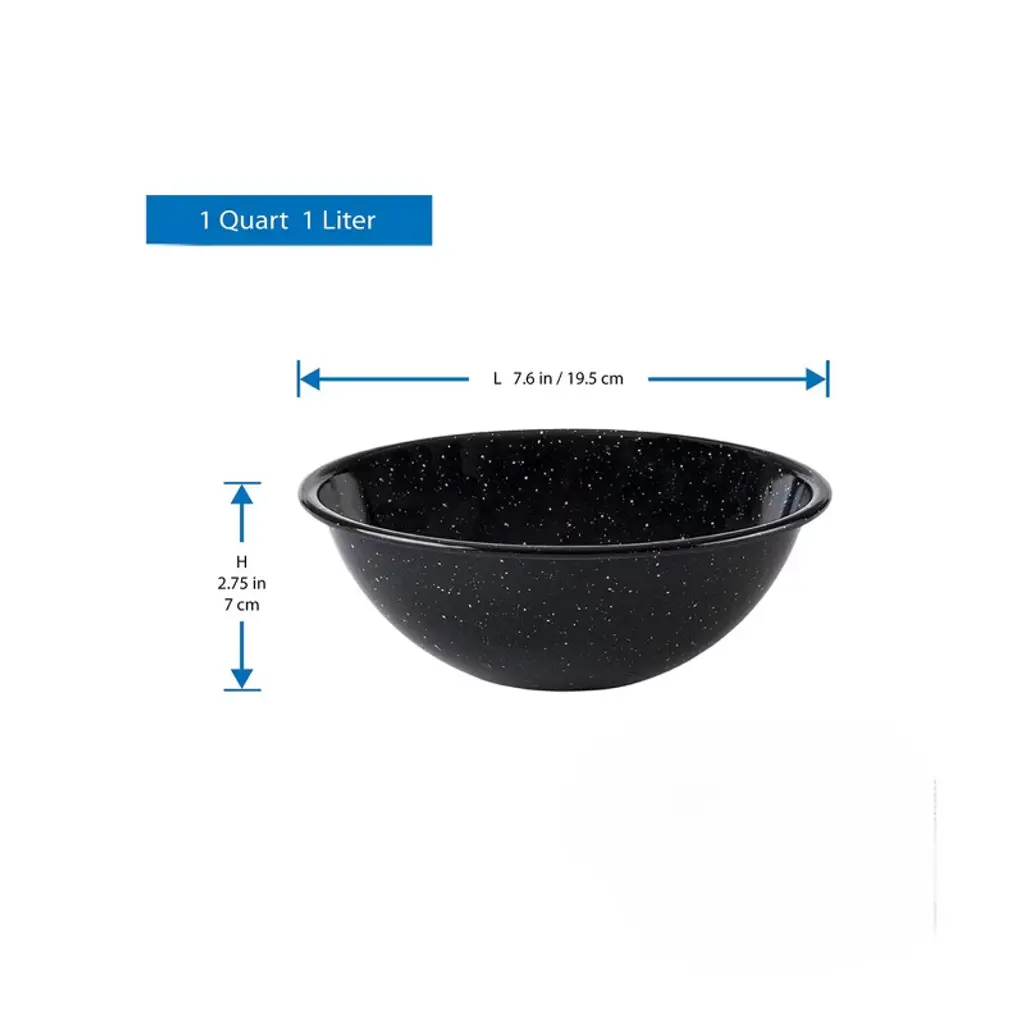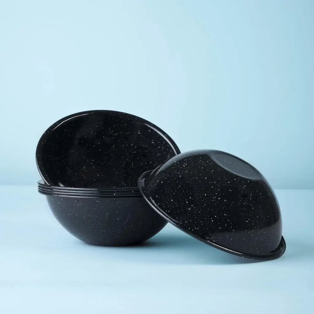 Granite Wire 7-inch Enameled Steel Bowl - Durable Indoor/outdoor Bowl - Oven & Fire-safe, Dishwasher-safe & Reusable Stackable Bowl (Speckled Black)