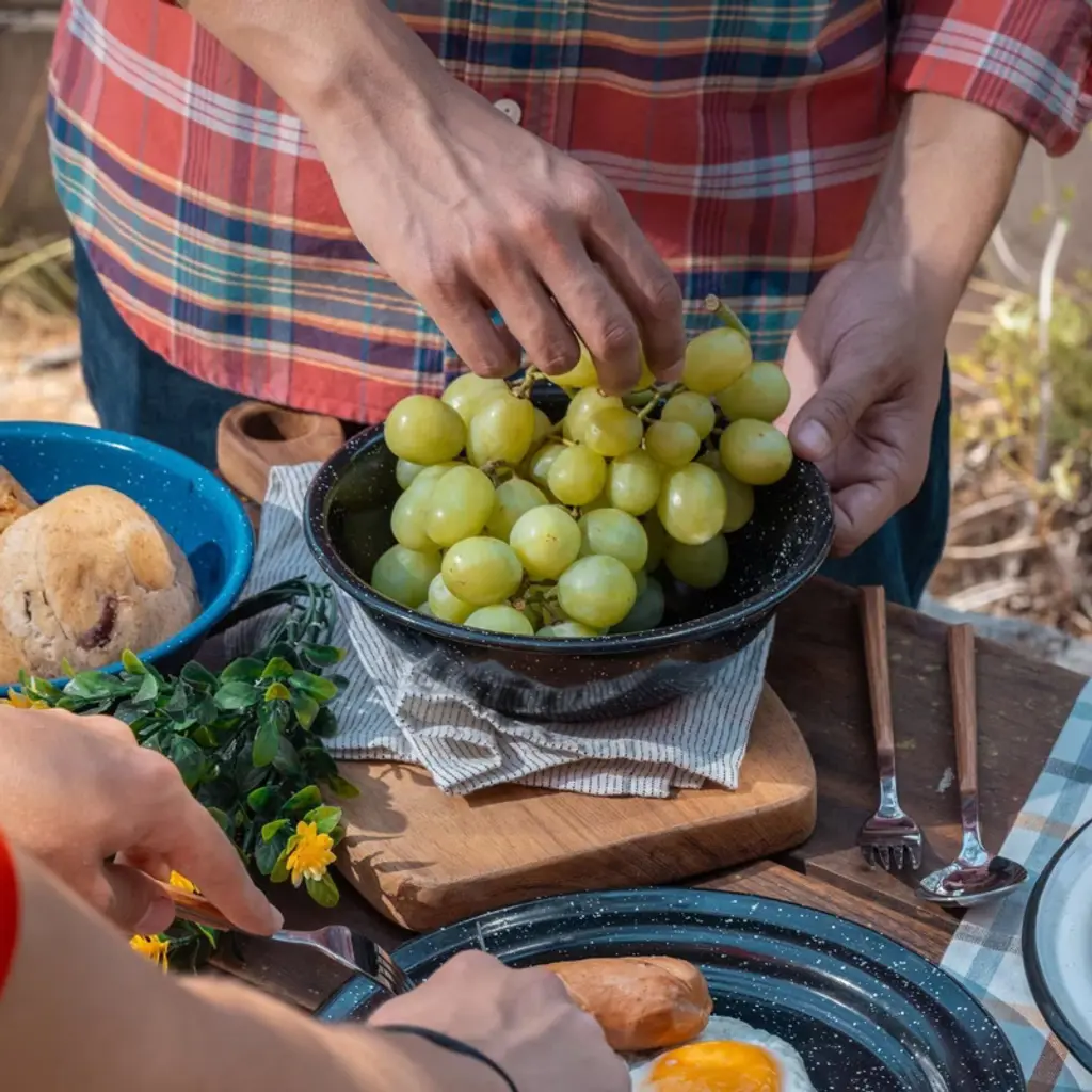 Elevate your dining experience with the Granite Wire Enameled Steel Bowl, designed for versatility, durability, and style. Each of the 7-inch bowls features a charming speckled design that adds a rustic, farmhouse-inspired look to your table, while being durable enough to withstand outdoor adventures. Whether you're hosting a family dinner, enjoying a picnic, or camping under the stars, this bowl set offers the flexibility to serve your favorite meals in style. Crafted from sturdy enameled steel, these bowls are built to handle everyday wear and tear, from the kitchen to the campsite. Their lightweight nature allows you to pack them effortlessly for camping trips or outdoor gatherings, without adding unnecessary weight to your gear. Additionally, the bowls are designed to stack easily, saving valuable space in your kitchen cabinets or travel bags. One of the standout features of this bowl set is its oven and fire-safe construction. Whether you're heating up soup at home or cooking directly over an open fire while camping, these bowls offer the versatility you need to prepare and serve your meals. You can confidently use them in high-heat environments without compromising their durability. When it comes to safety, the Granite Wire enameled bowl set is free from harmful chemicals such as PFOA and PTFE, ensuring your food remains safe and free from potential chemical contaminants. This feature not only promotes better health but also aligns with environmentally conscious dining. This bowl offers a practical and stylish solution for all your dining needs, whether at home or in the great outdoors. With its combination of durability, functionality, and aesthetic appeal, the Granite Wire Enameled Steel Bowl is an excellent addition to any kitchen or camping setup.