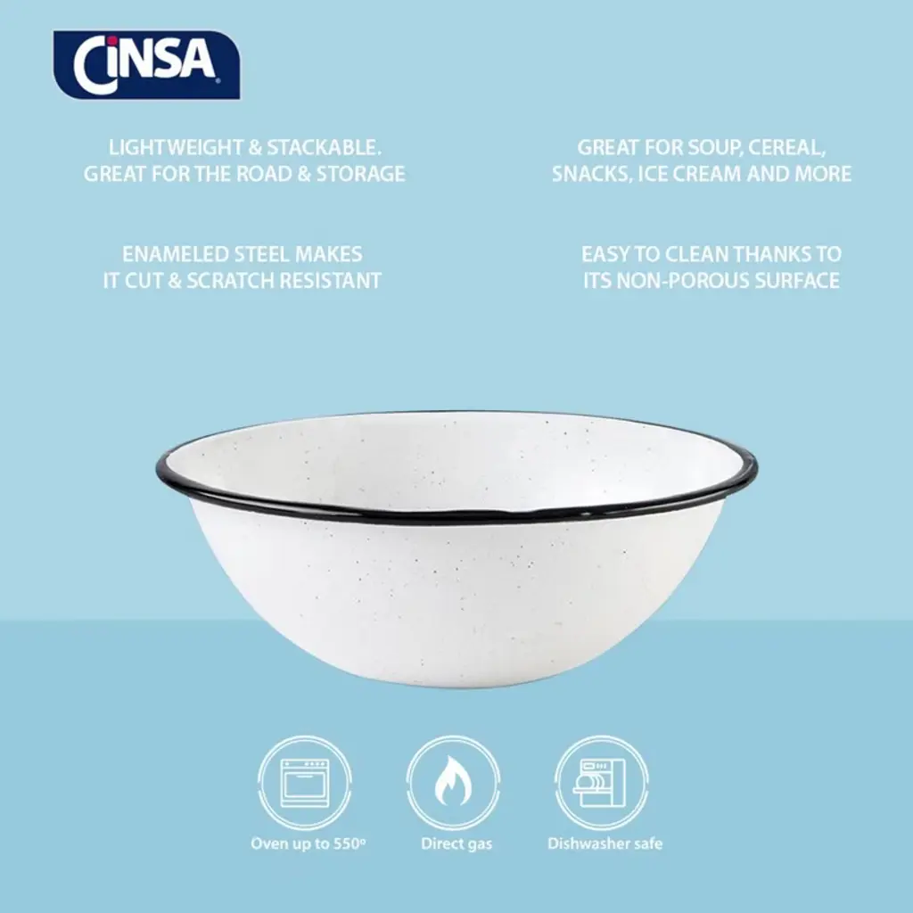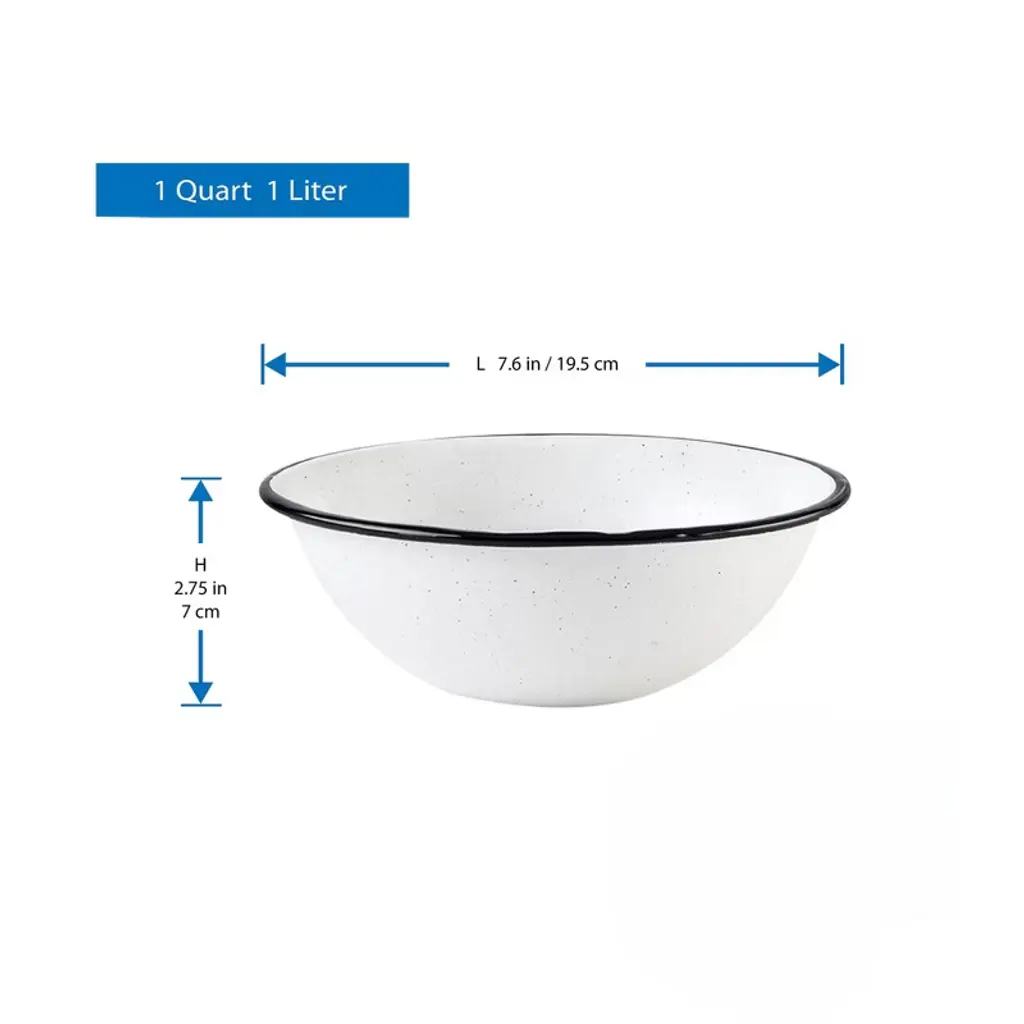 Granite Wire 7-inch Enameled Steel Bowl - Durable Indoor/outdoor Bowl - Oven & Fire-safe, Dishwasher-safe & Reusable Stackable Bowl (Speckled White)