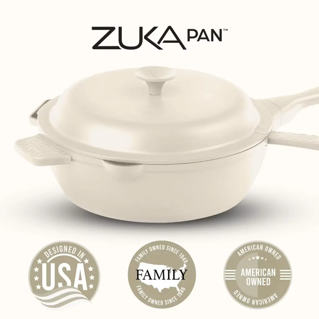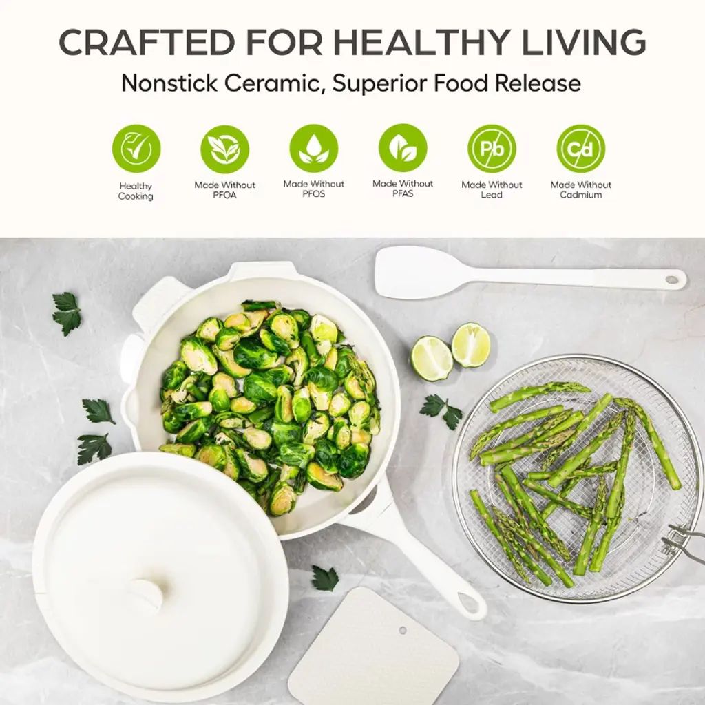 Granitestone Zuka Everyday Pan 10" Cream Nonstick Multi-functional Saute Pan With Lid, Nylon Spoon And Steamer Basket