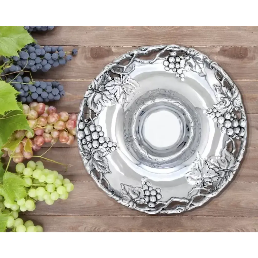 Include nature's beauty in the design of your serveware with this Grape Oval Platter from Arthur Court. A layered vine creates the openwork border of this dish as bundles of grapes and leaves mingle just inside the edge. The incredible definition within each veiny blade and piece of fruit gives this handmade, aluminum platter a realistic appeal.