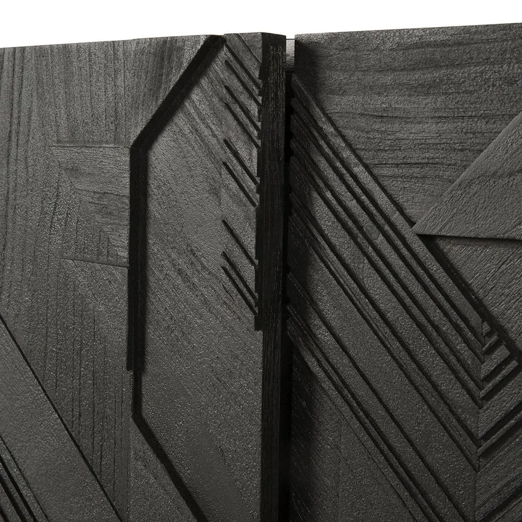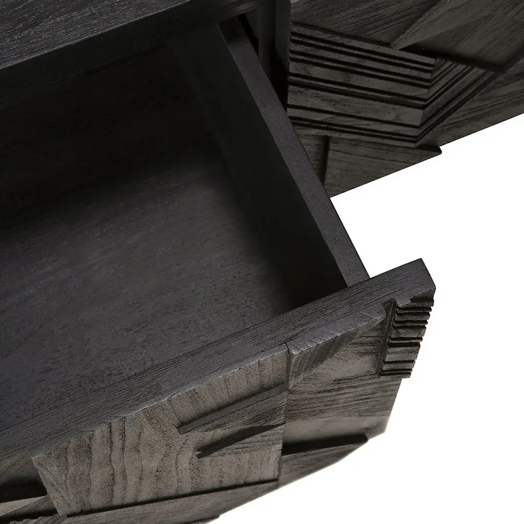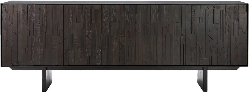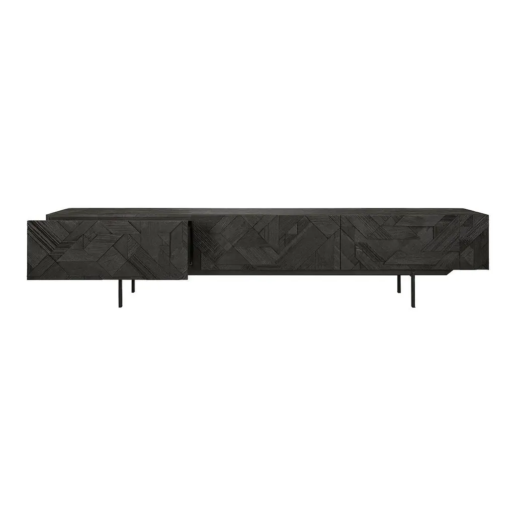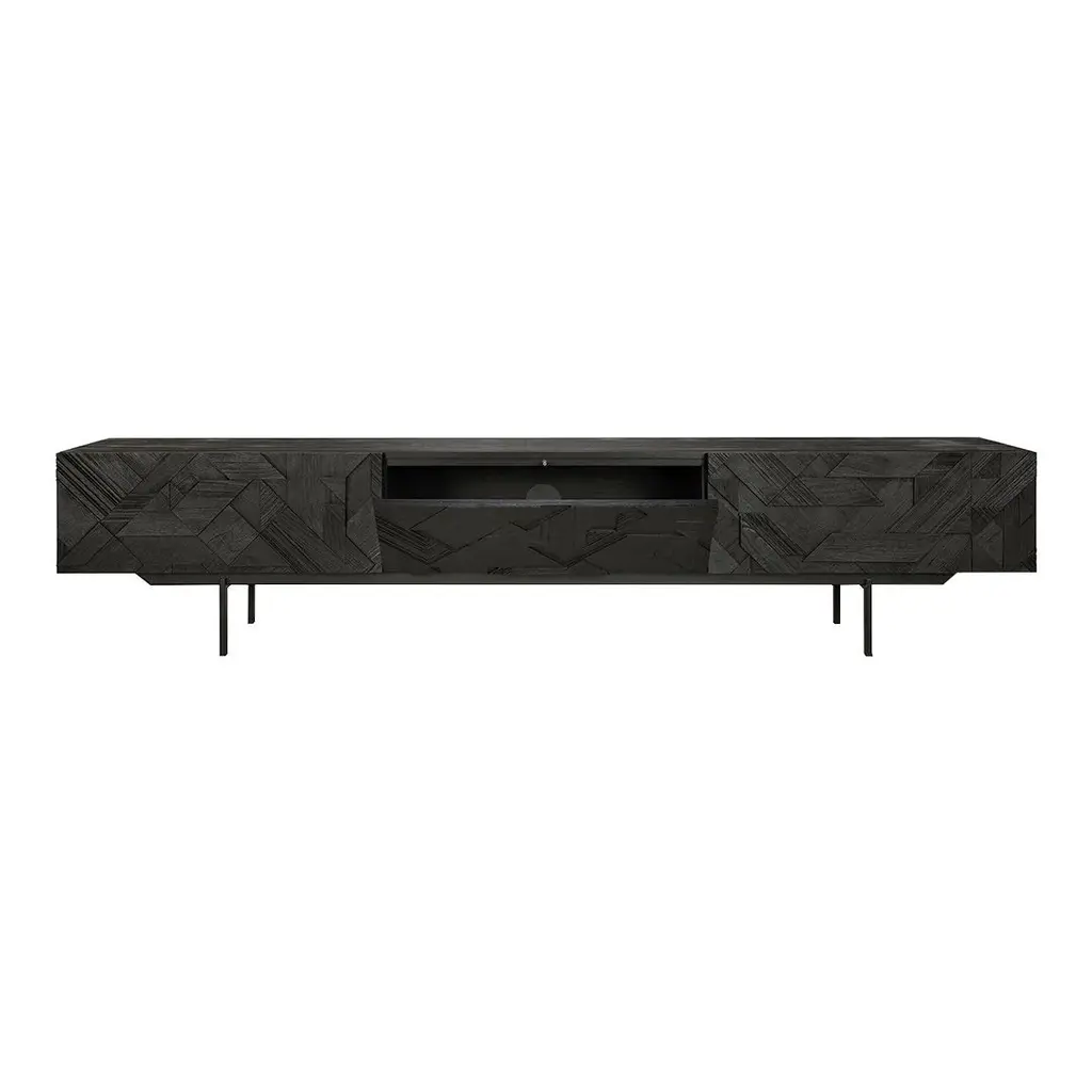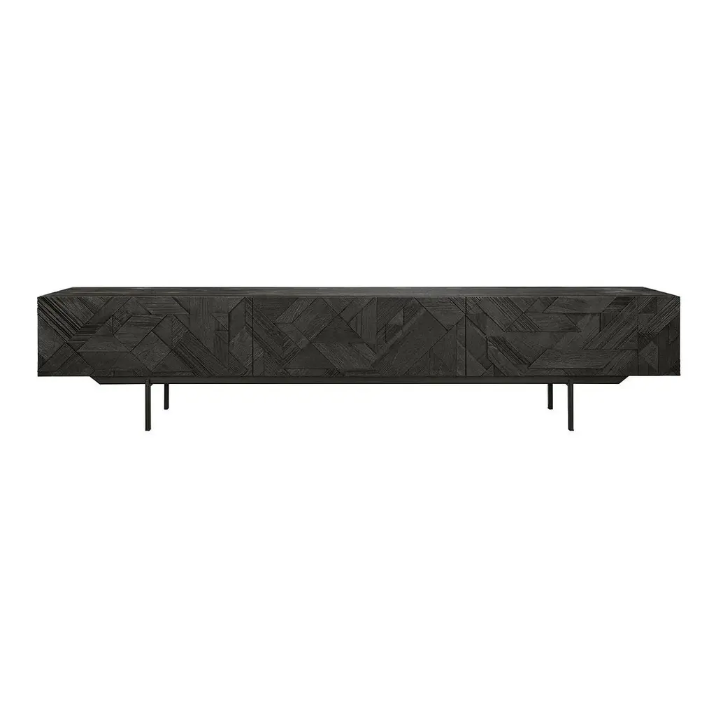 In his quest to add movement to the surface, our designer Alain van Havre started layering and combining triangular shapes. Before he knew it, he had created an interesting composition out of teak. We ended up brushing the surface to highlight the grain and further emphasize the feeling of motion. Originally used for our popular Teak Graphic sideboard, the pattern now translates perfectly to a new TV cupboard.