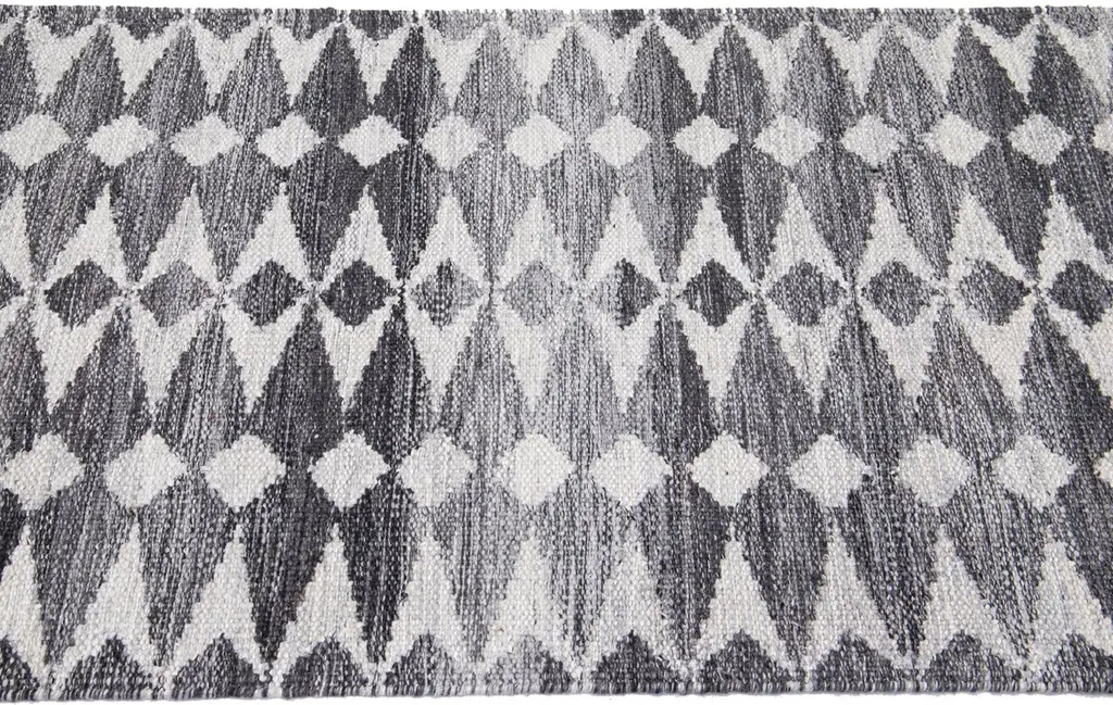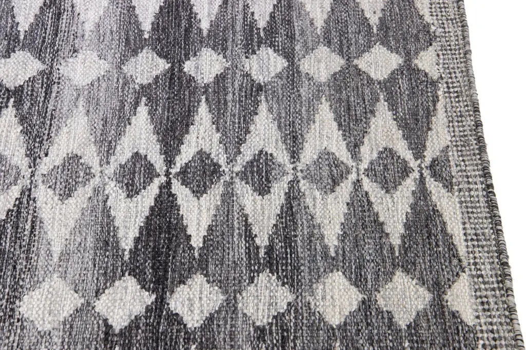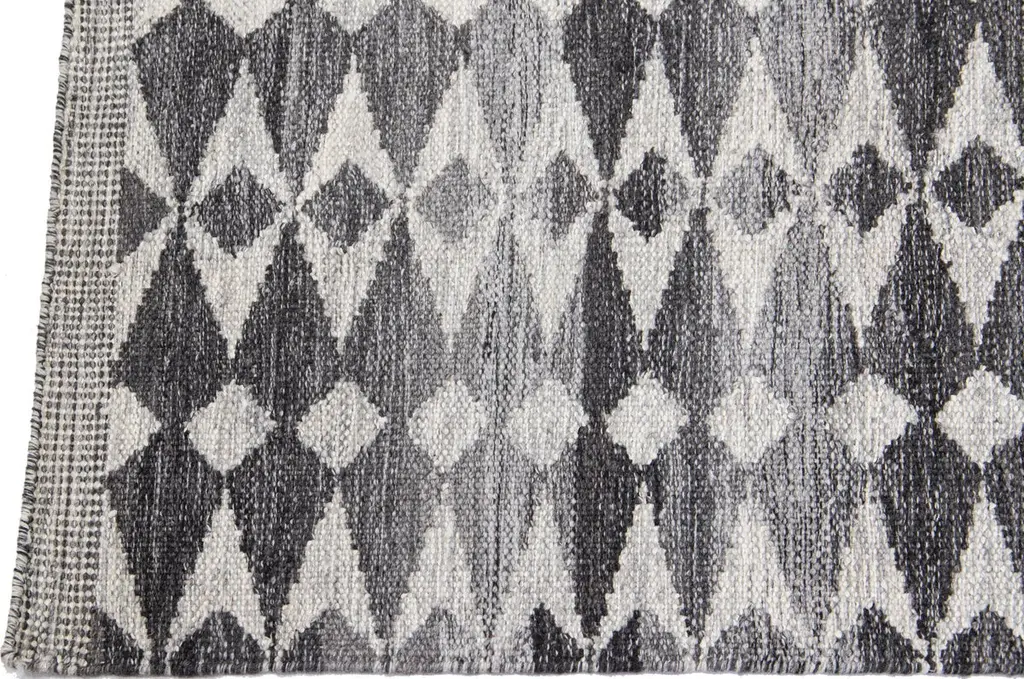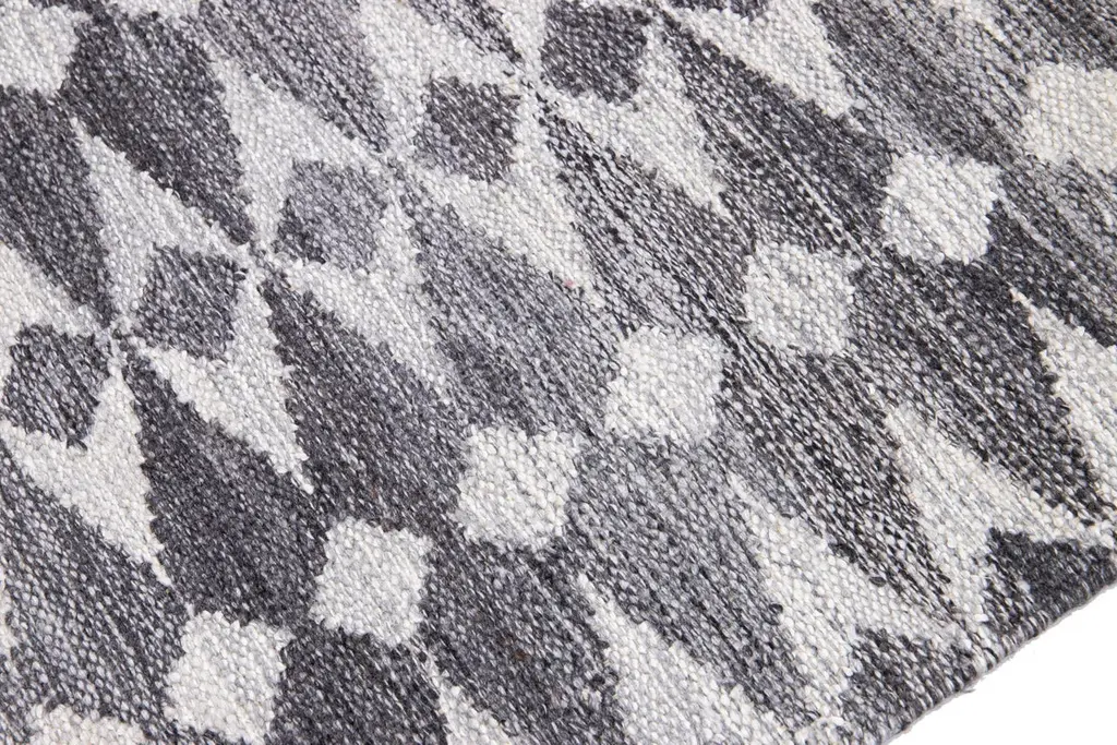 Gray Modern Swedish Style Handmade Abstract Designed Wool Runner