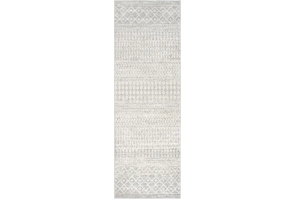 Beautiful modern Swedish-style wool rug with a gray field. This piece has white accents featuring a gorgeous all-over geometric abstract design. This runner measures: 3'2'' x 21'10''.Our rugs are professional cleaning before shipping.