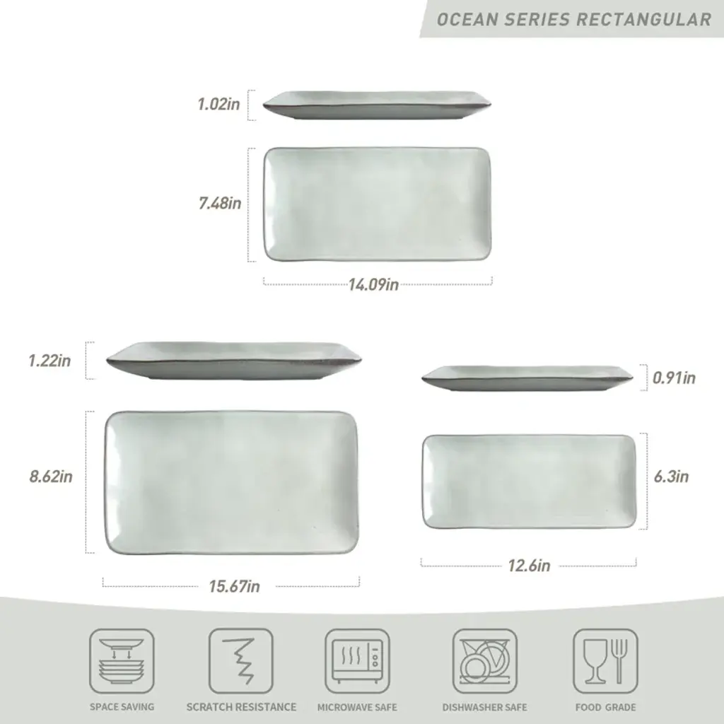 This serving Platter set is the ultimate combination of style, functionality, and versatility. This serving dishes is made of 100% lead-free glaze and no need to worry about harmful substances leaching into your food. Bright and dreamy colors enhance the luxury of this sturdy stoneware tableware to feast your guests' eyes and set the tone for a pleasant meal. Each tray is made of high-quality stoneware that is dishwasher and microwave-safe. The dish set is easy to clean and easy to care for. These serving trays can hold anything you like, including vegetable, seafood, fruit, steak, barbecue, cake and more.