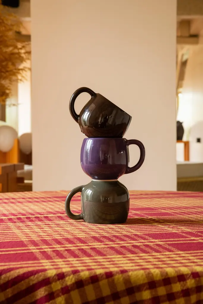 As part of our ceramic breakfast capsule, this mug is both fun and functional. Finished with a high-gloss glaze in shades of purple, brown, and green, it can be used on its own or combined with the matching tray and espresso cup to create a full set. This mix-and-match collection allows you to curate your own set of three items. Made in Portugal.