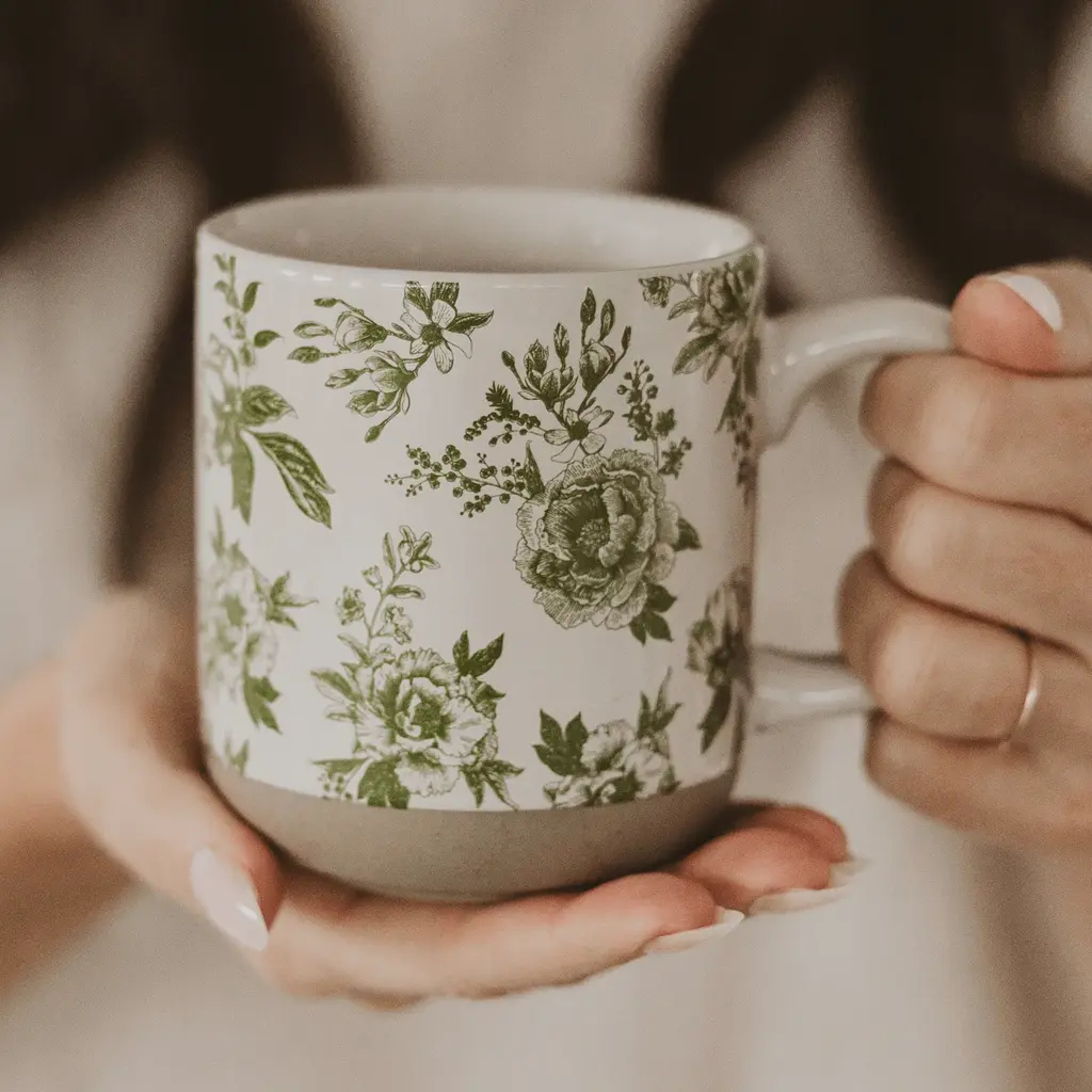 About This Item Start your day with a touch of charm and tranquility using our Green Delft stoneware mug. With its delicate floral design and calming green hue, this mug is perfect for savoring your favorite beverage and embracing moments of stillness and joy. Whether you're enjoying a quiet morning on the patio or catching up with loved ones, this timeless mug adds elegance to your daily routine. Designed for tea, coffee, or any cozy drink, it inspires you to enjoy life's simple pleasures and create a serene atmosphere wherever you go. Each piece is hand-crafted, making the character of each mug perfectly unique. There may be slight variations in each stoneware coffee mug. Coffee Mug Details 14oz Stoneware Style Mug Size: 3.31 x 3.93" (5.19" w/handle) Original Design: Green Delft Design on Both Sides of Mug Cream with Green Delft Pattern Speckled Design with Natural Bottom Details (Each is Perfectly Unique) Designed in the USA, Imported Style No. CM170 Coffee Mug Care Dishwasher and Microwave Safe Wash Before Use and Avoid Abrasive Cloths When Cleaning Use Caution When Removing From Microwave <!-- td {border: 1px solid #ccc;}br {mso-data-placement:same-cell;} --> <!-- td {border: 1px solid #ccc;}br {mso-data-placement:same-cell;} -->