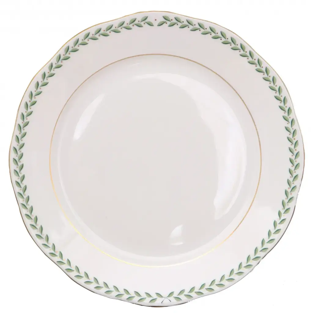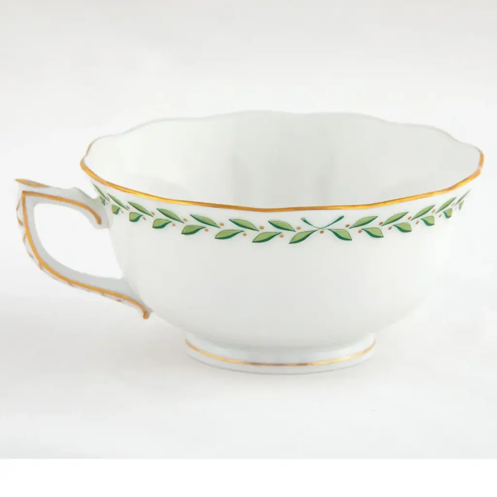 Trim even leaves hint at the beauty of a formal topiary garden but the duality of the green color adds a playful dynamic that makes this pattern the perfect companion from holiday tablescapes to summer picnics on the lawn. Handpainted in Hungary. Now the biggest porcelain manufactory in Europe, Herend was founded in 1826 to produce earthenware in the small Hungarian village for which it was named. At the time, Hungary was flooded with low-cost pottery, but in 1839, Mor Fischer became the Manufactory’s new owner and he decided to focus on producing dinnerware replacement pieces for Europe’s royal families to complement their valuable porcelain patterns from Germany and the Far East. As his client base grew, Fischer commissioned his artists to begin designing dinnerware patterns of their own. Queen Victoria’s 1851 purchase of a large set for Windsor Castle was a milestone, setting the stage for aristocrats throughout Europe to clamor for Herend in their estates. In the 1850s, Herend added meticulously-crafted figurines to its creations. Herend’s trademark fishnet pattern, which is widely recognized and prized as Herend’s signature design, started in 1858 when an artist who was intrigued with a Chinese plate’s fish scale design painted it onto a rooster figurine to imitate feathers.