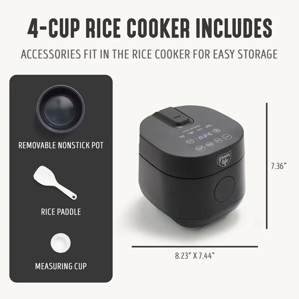 Greenlife 4 Cup Rice And Grains Cooker Black