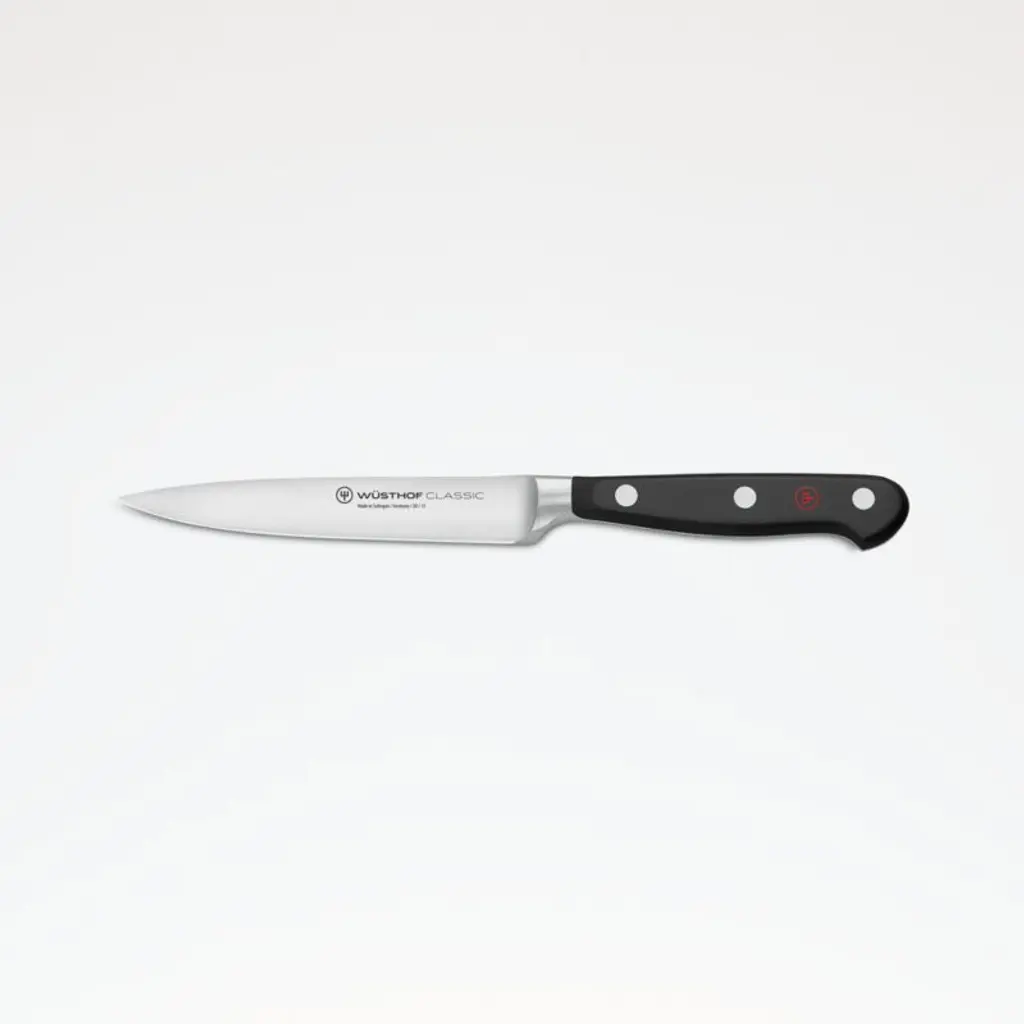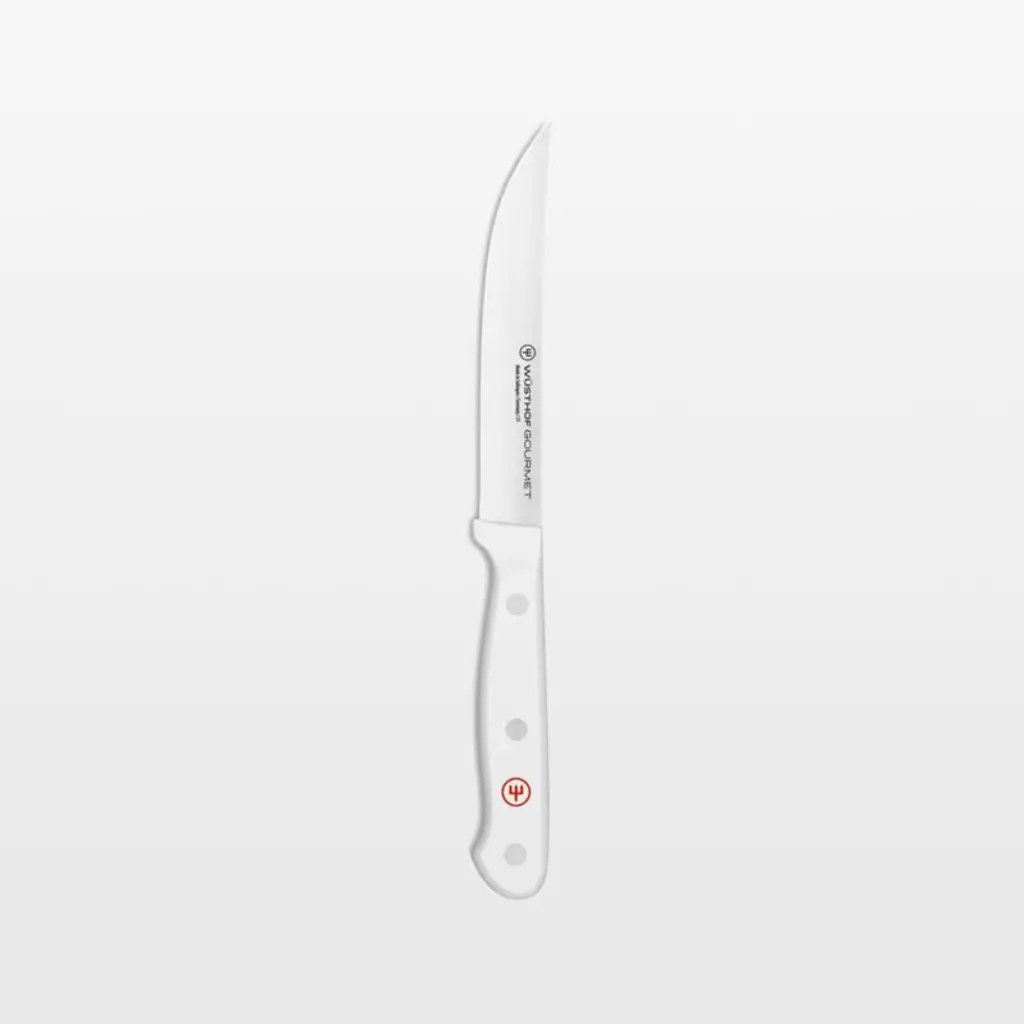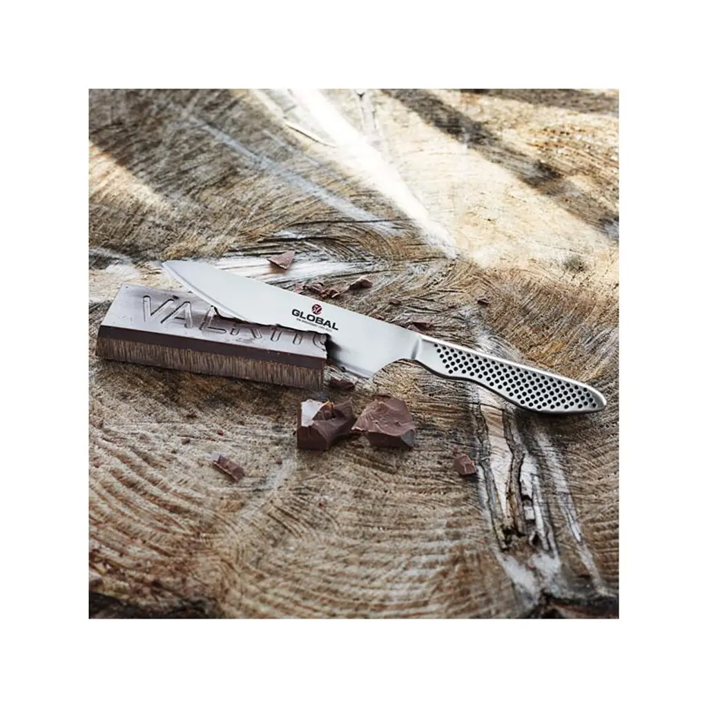The Global GS-89 chef's knife is a compact all-purpose knife with an ergonomically shaped handle and a 5.12 in (13 cm) blade, ideal for cutting both meat and vegetables with ease and control. Crafted from all-stainless steel, the knife features a one-piece seamless construction that makes it exceptionally hygienic and easy to clean. The signature dotted handle is filled with sand to ensure a perfectly balanced grip. Designed by Komin Yamada, the knife performs brilliantly in both home kitchens and professional settings. Each Global knife is handcrafted in Japan, drawing on the tradition of samurai sword making. Forged from Cromova 18 – a high-grade, high-hardness stainless steel developed exclusively for Global – the blade offers excellent resistance to rust and corrosion. Thanks to its steep, acute cutting angle, the edge stays sharper for longer, delivering performance that surpasses conventional kitchen knives.