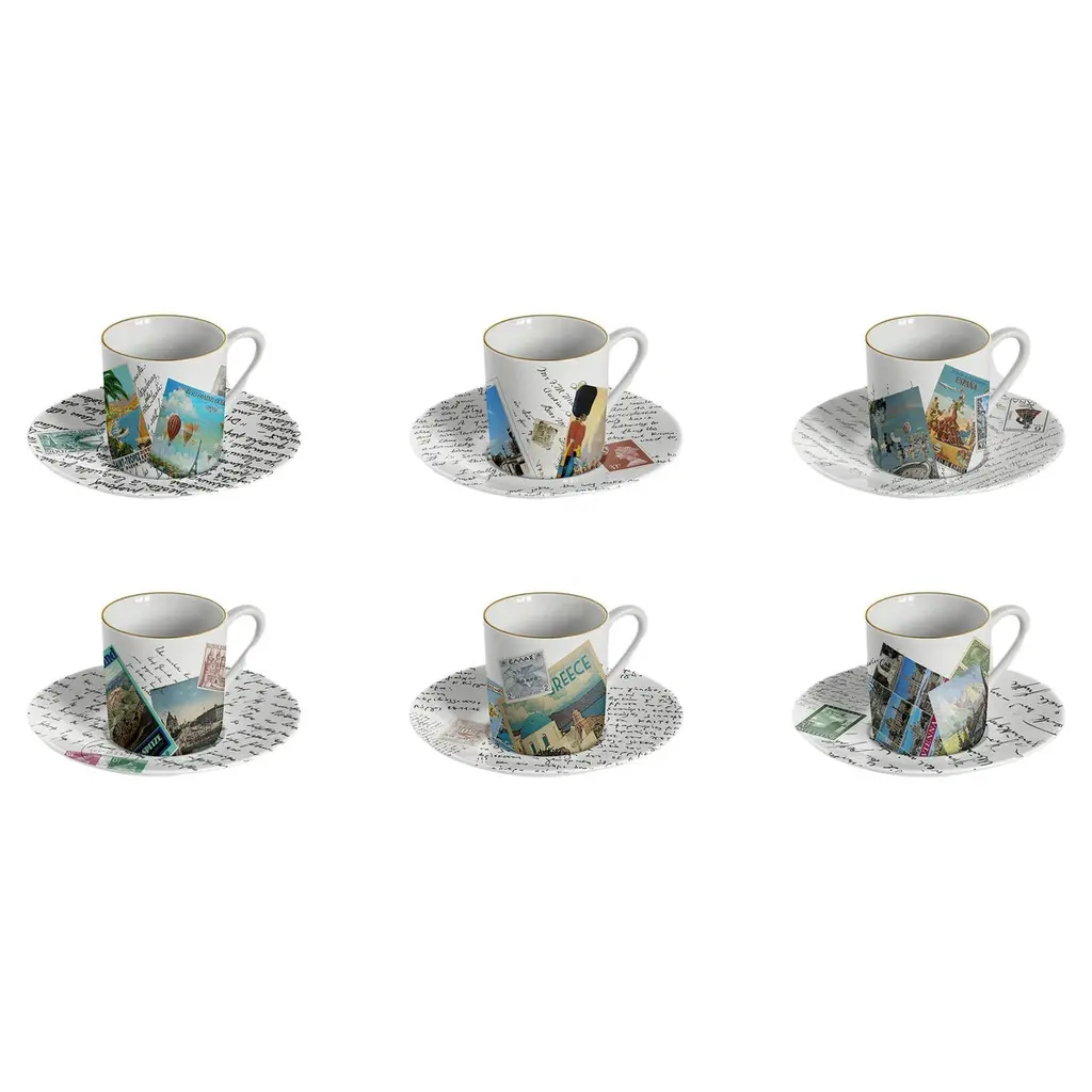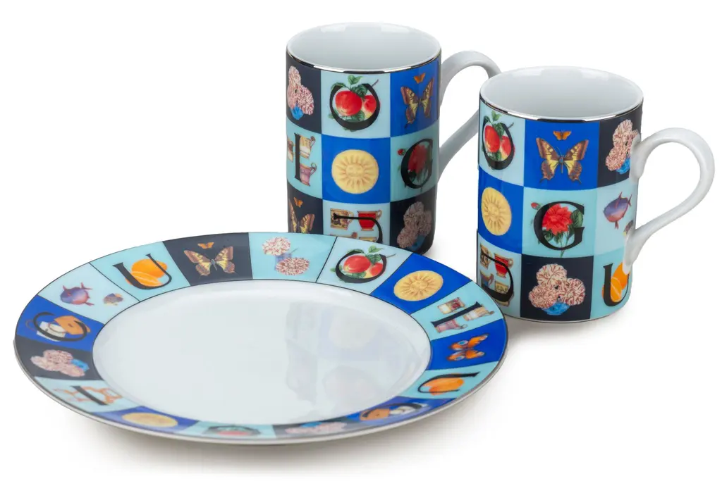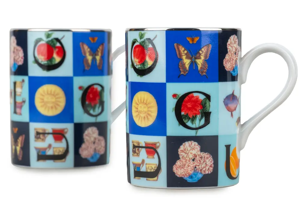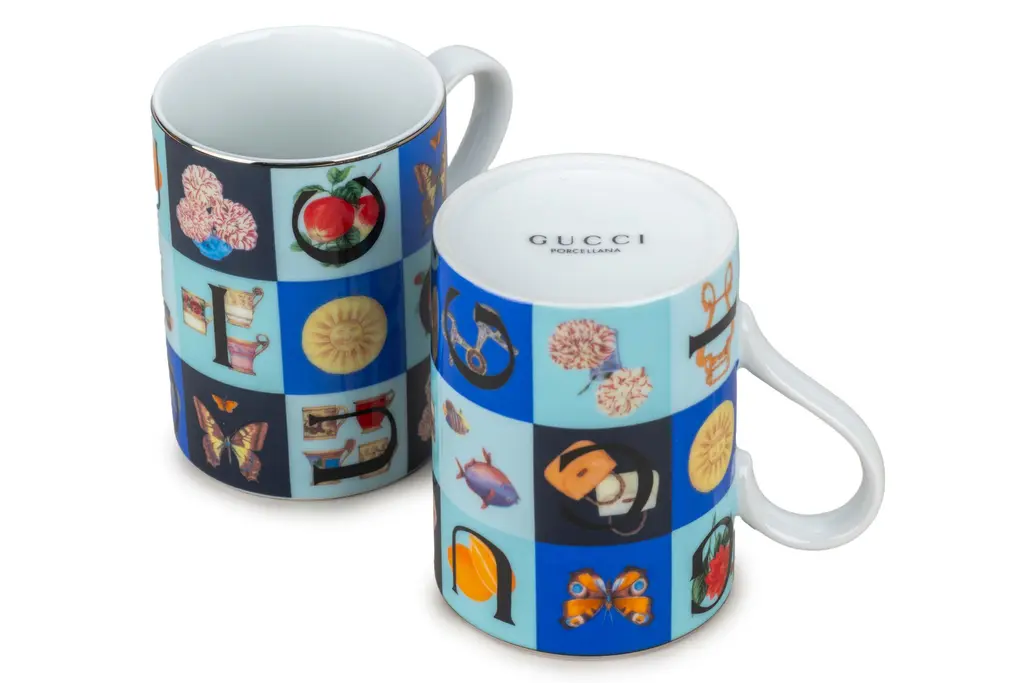 Gucci set of 2 porcelain multicolor tea cups, blue, white. Excellent condition. Dessert plate not included.