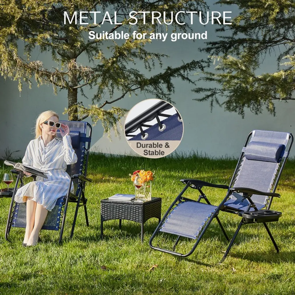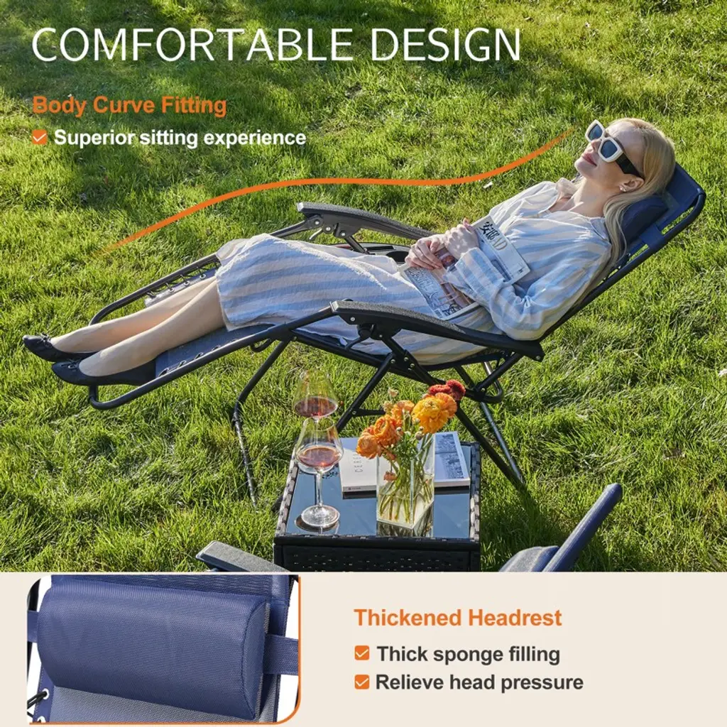 Gulches Set of 2 Zero Gravity Lounge Chairs is perfect for outdoor patios, pools, or beaches. Each chair features a folding recliner design that reduces pressure on the body, plus a soft pillow for neck support and a built-in cup holder. Sturdy yet easy to fold, they¡¯re simple to store or transport¡ªgreat for sharing relaxation with family or friends in any outdoor space.