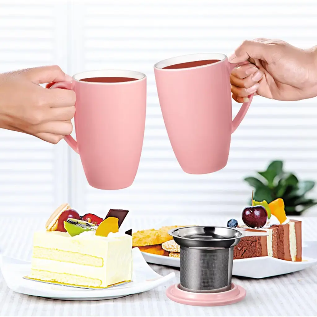 This 16oz ceramic tea mug combines natural glaze safety with a precision-engineered stainless steel infuser featuring ultra-fine perforations for residue-free steeping. The thermal-stable handle stays cool during hot beverages, while durable ceramic withstands daily use. Ideal for teas, coffee, or cocoa, its generous capacity suits extended enjoyment. Merges artisanal craftsmanship with functional design—perfect as a gift for tea enthusiasts seeking effortless brewing mechanics and ergonomic comfort through purely material engineering, free from electrical components.