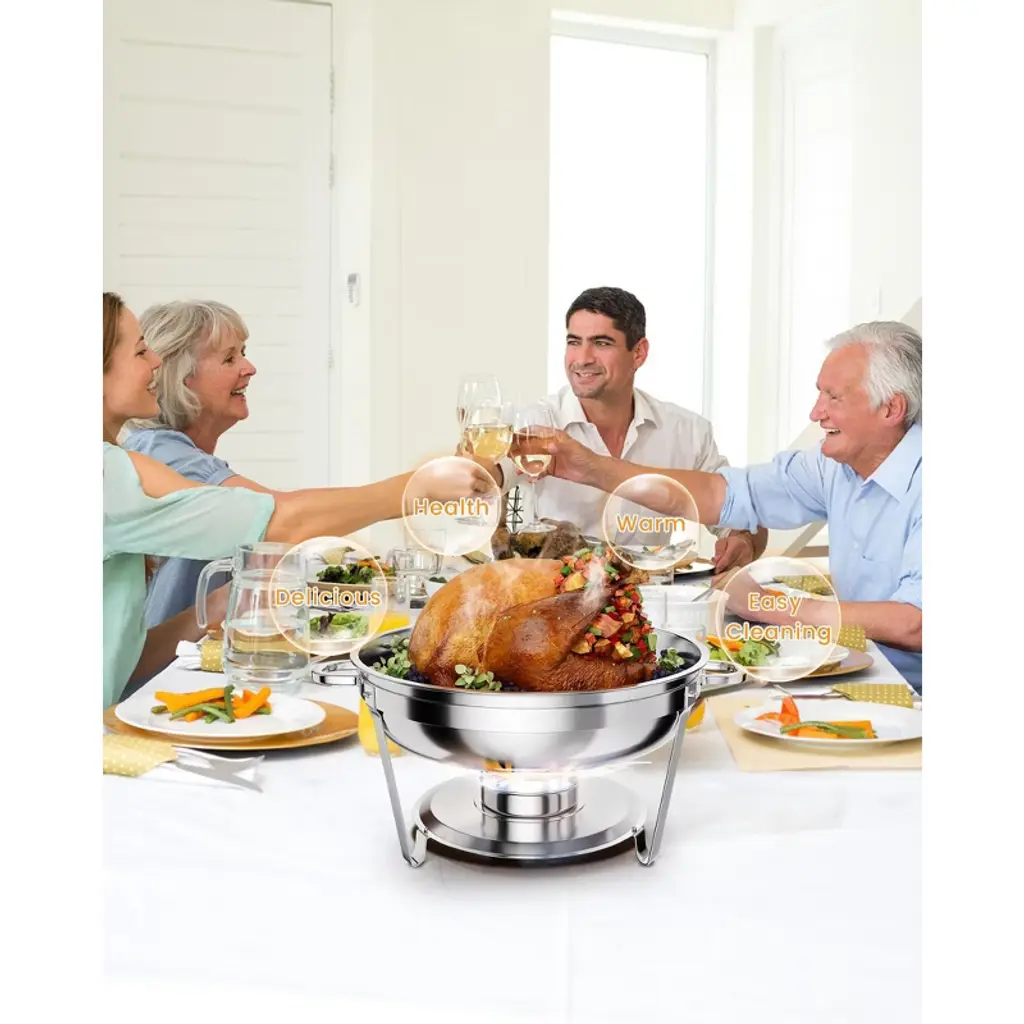 Gustowave 5Qt Chafing Dish Buffet Set Of 6 Pack, Food Warmers And Servers Round Stainless Steel Chafer With Food & Water Pan, Lid, Frame