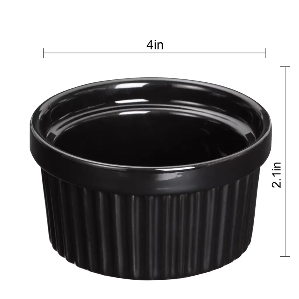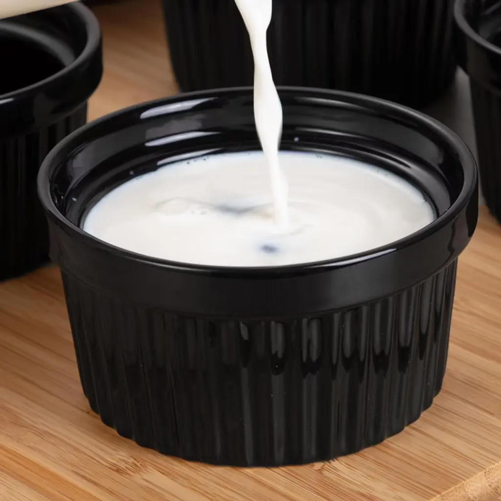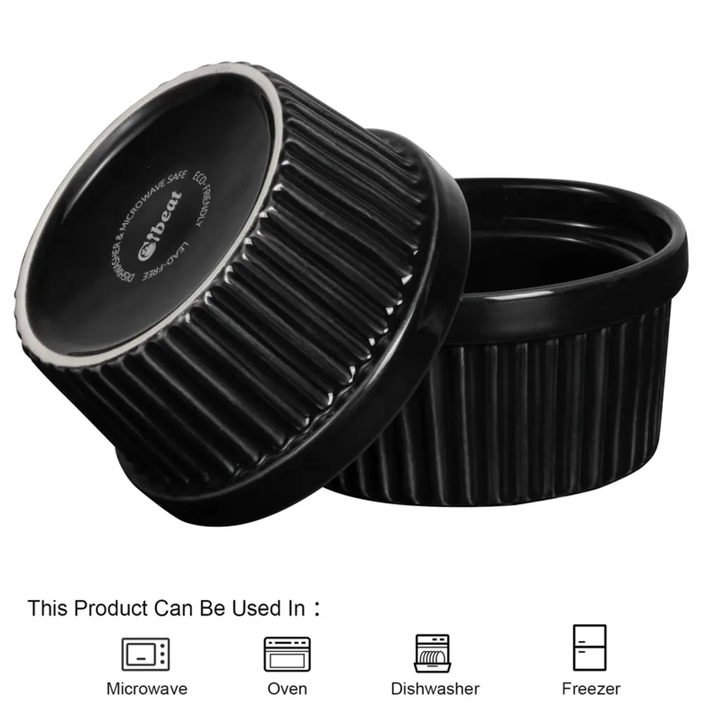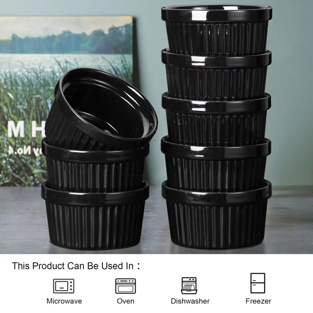 Gustowave 8 Oz Ceramic Ramekins Bowls, Set Of 8 Souffle Dishes Ramekins For Creme Brulee Dishes, Pudding, Custard Cups, Oven Safe, Black