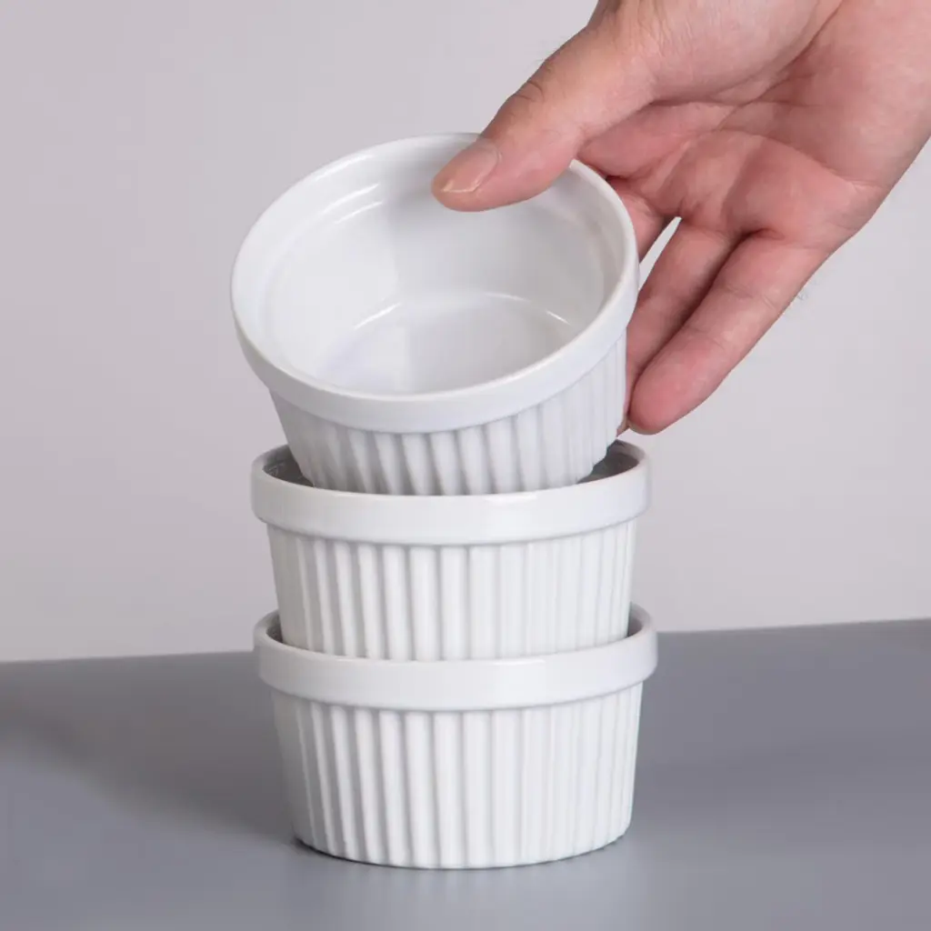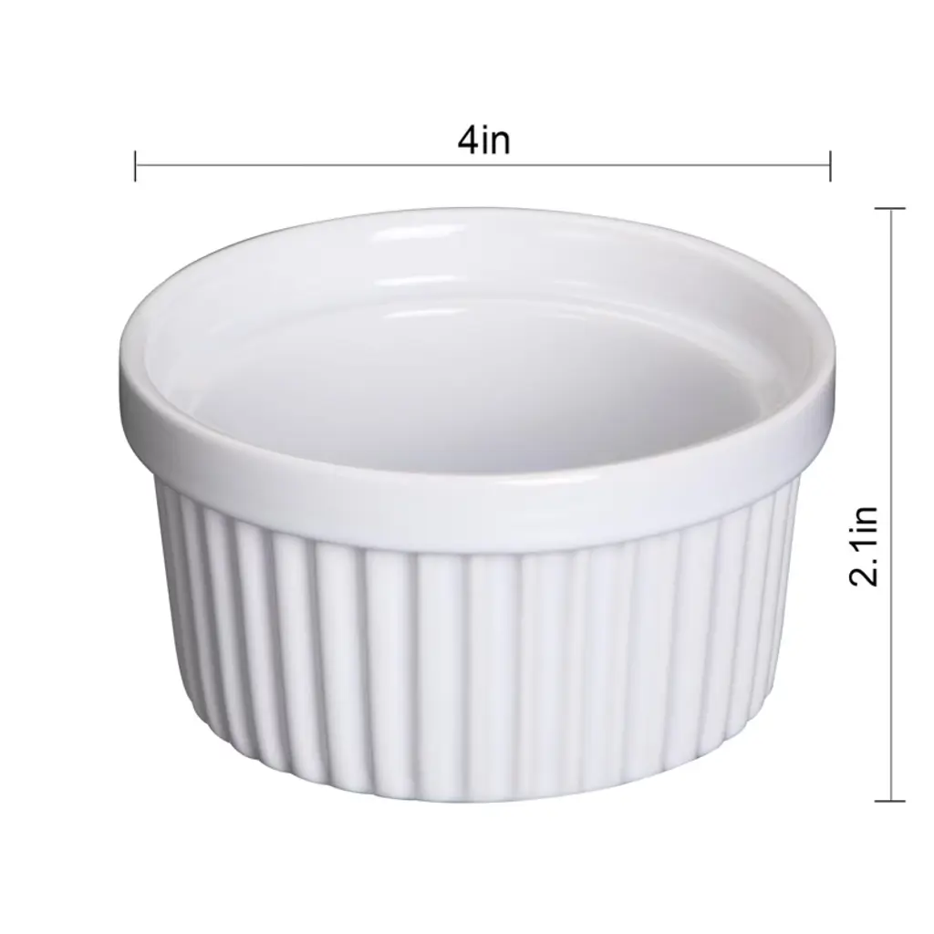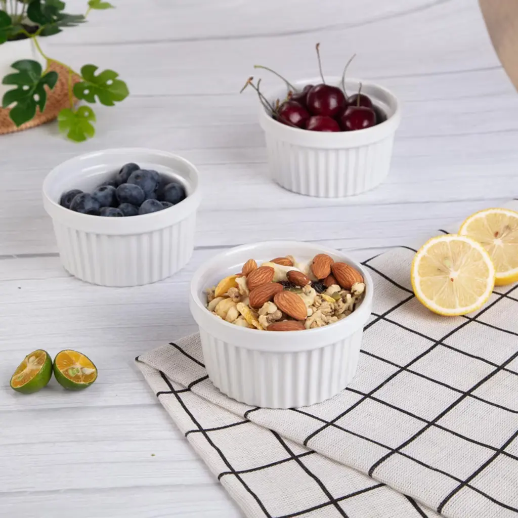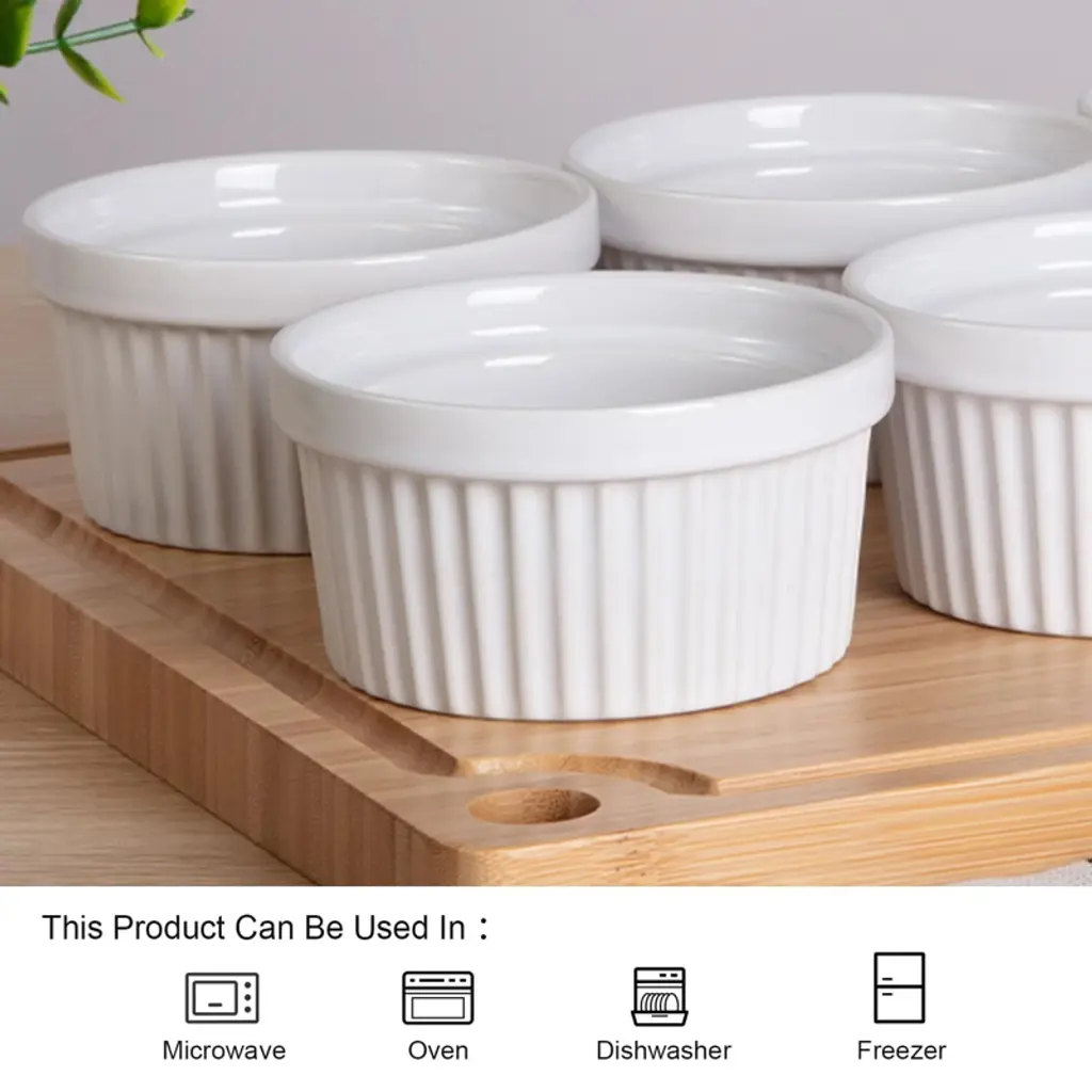 Gustowave 8 Oz Ceramic Ramekins Bowls, Set Of 8 Souffle Dishes Ramekins For Creme Brulee Dishes, Pudding, Custard Cups, Oven Safe, White