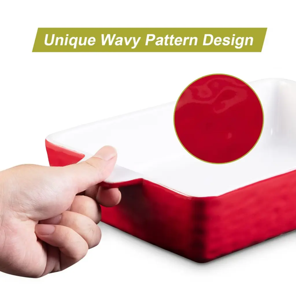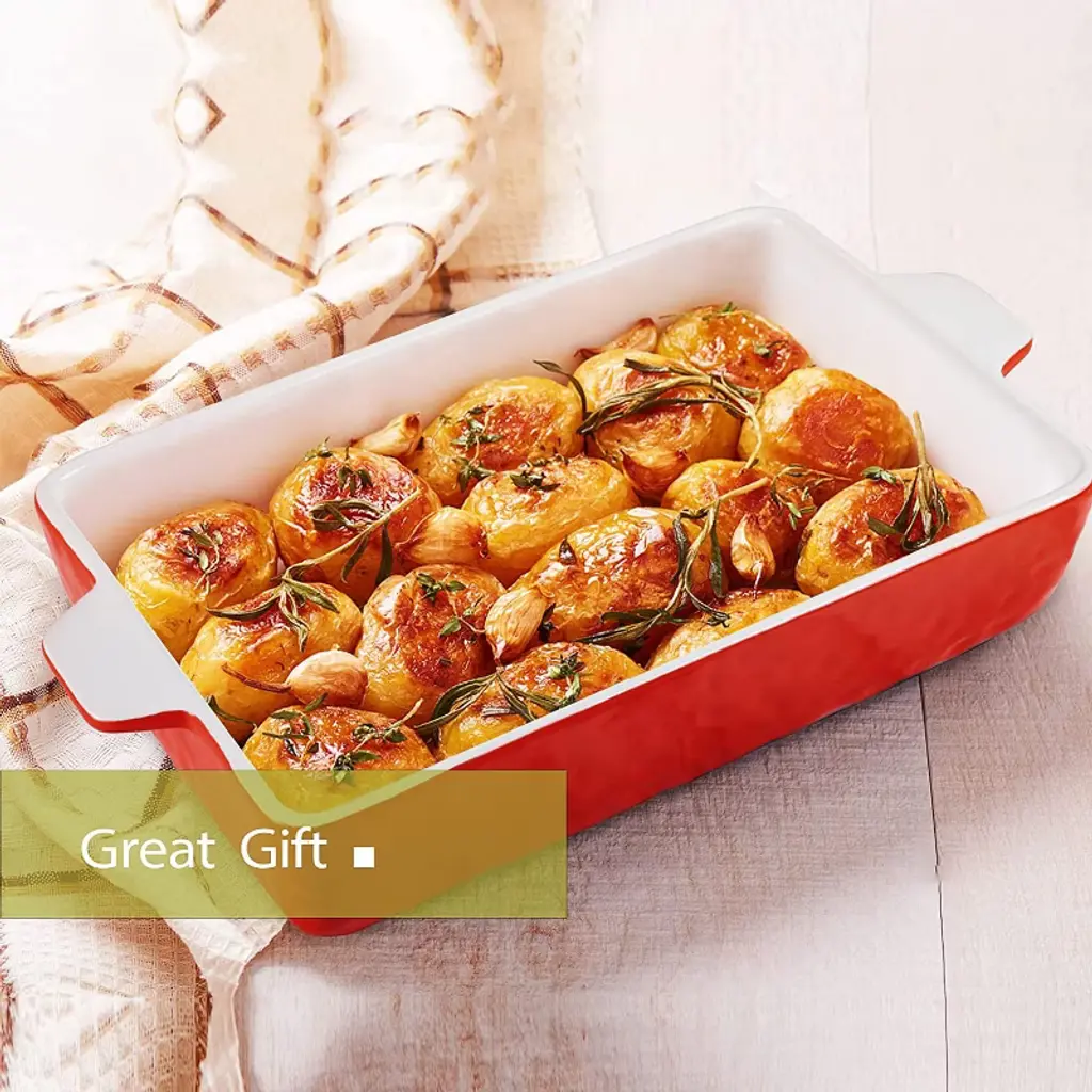 Gustowave Ceramic Baking Dish 3-piece Sets With Handles, Rectangular Bakeware Dishes For Oven, Cooking, Kitchen, Cake, Red