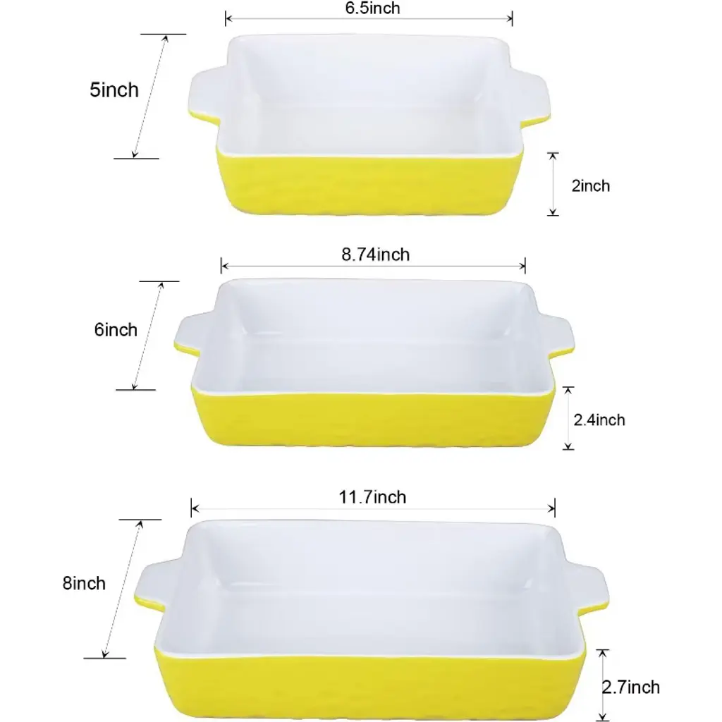 Gustowave Ceramic Baking Dish 3-piece Sets With Handles, Rectangular Bakeware Dishes For Oven, Cooking, Kitchen, Cake, Yellow