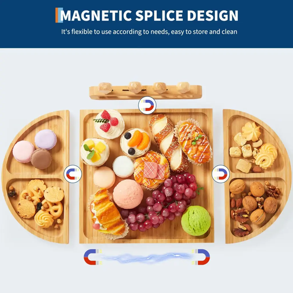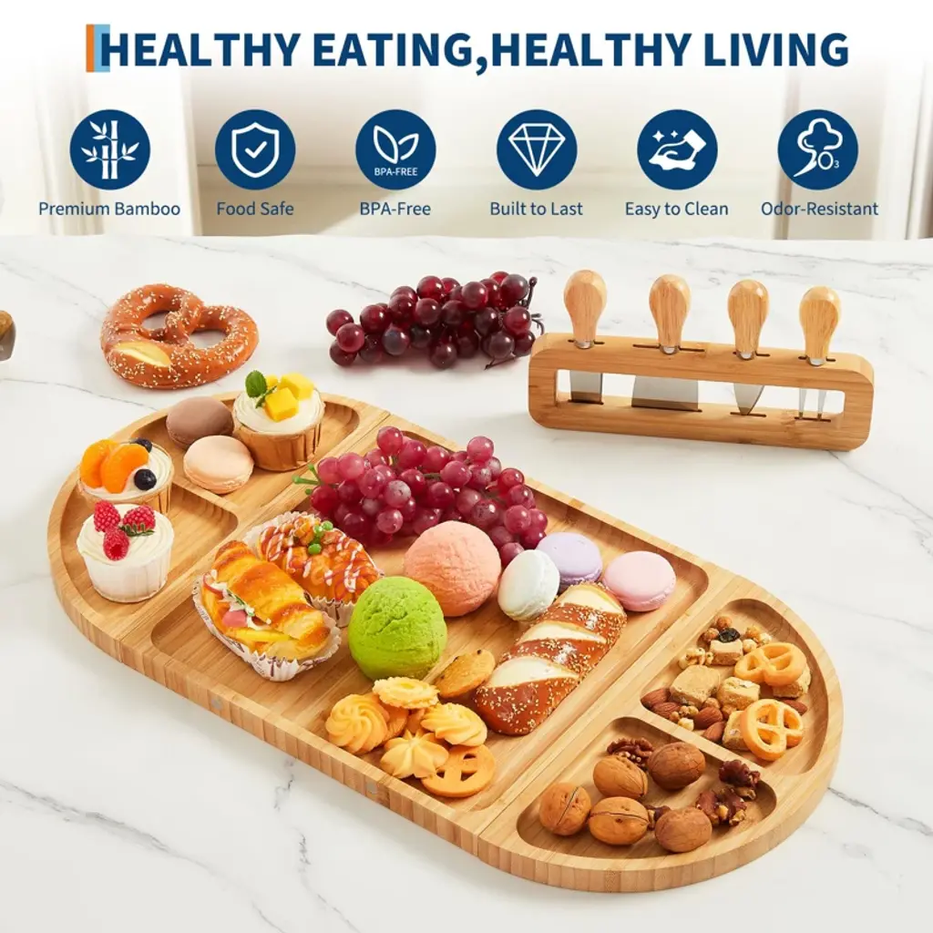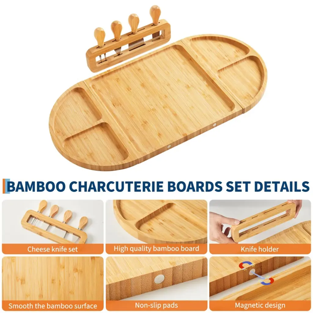 Gustowave Charcuteri Board And Serving Set, Bamboo Cheese Board With Knife Set, Magnetic Long Charcuteri Boards Gift Set For Serving Food, Snack