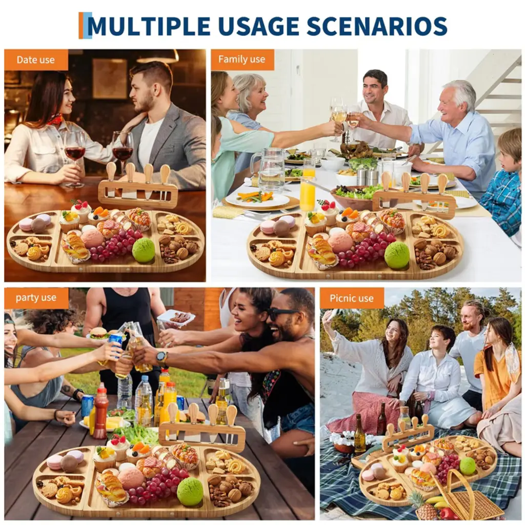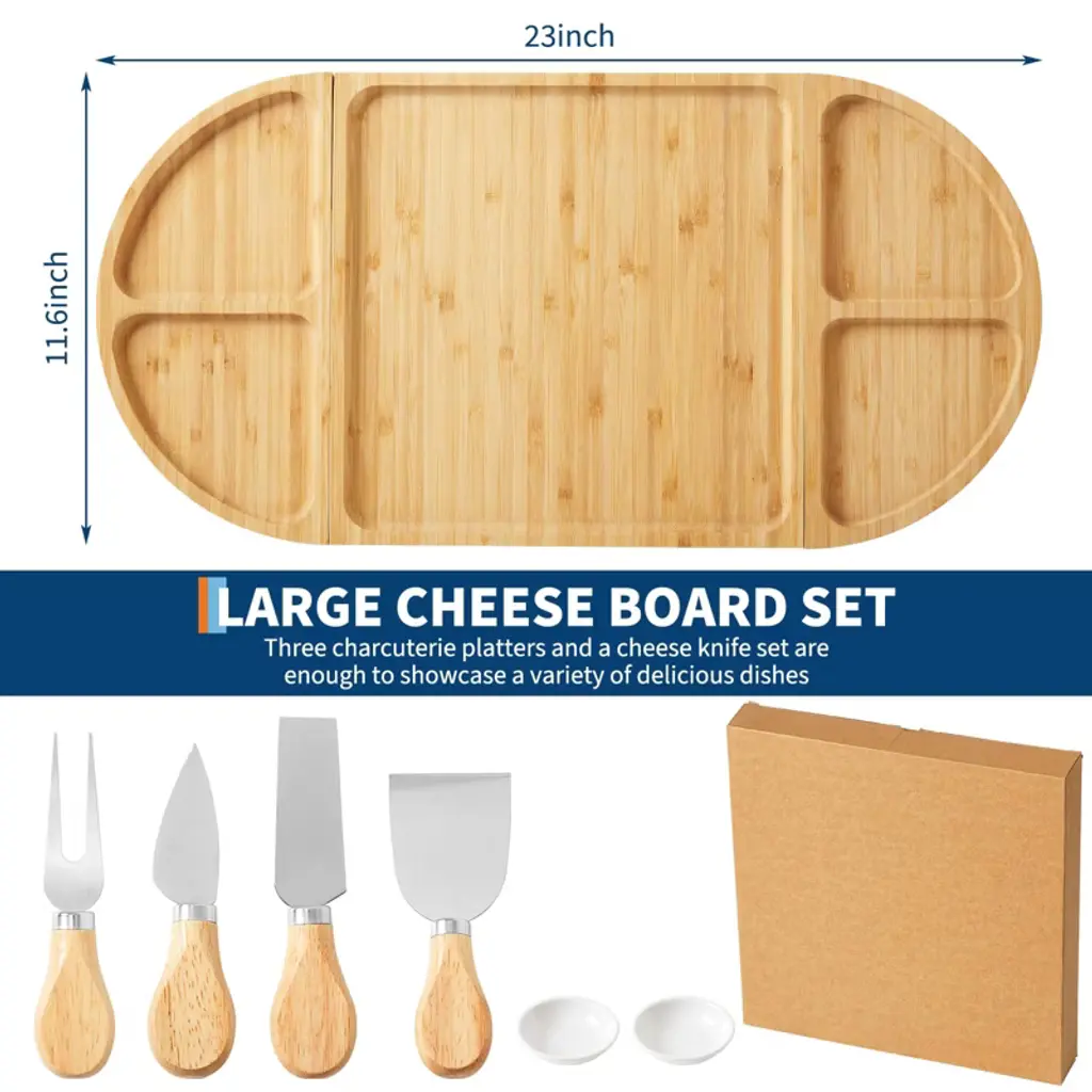 This 23" × 11.6" expandable bamboo set redefines hosting with 3 interchangeable boards that magnetically connect for large charcuterie displays or separate for compact storage. Crafted from stain/odor-resistant bamboo, it doubles as a cutting board for kitchens or camping, while the included titanium-plated knives (with bamboo handles) add gourmet flair. Perfect for cheese tastings, sushi platters, or fruit displays, its modular design adapts to any occasion—from weddings to dinner parties. Gift-ready packaging makes it an eco-chic choice for holidays, housewarmings, or culinary enthusiasts who appreciate functional elegance.