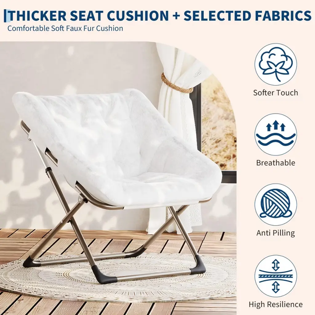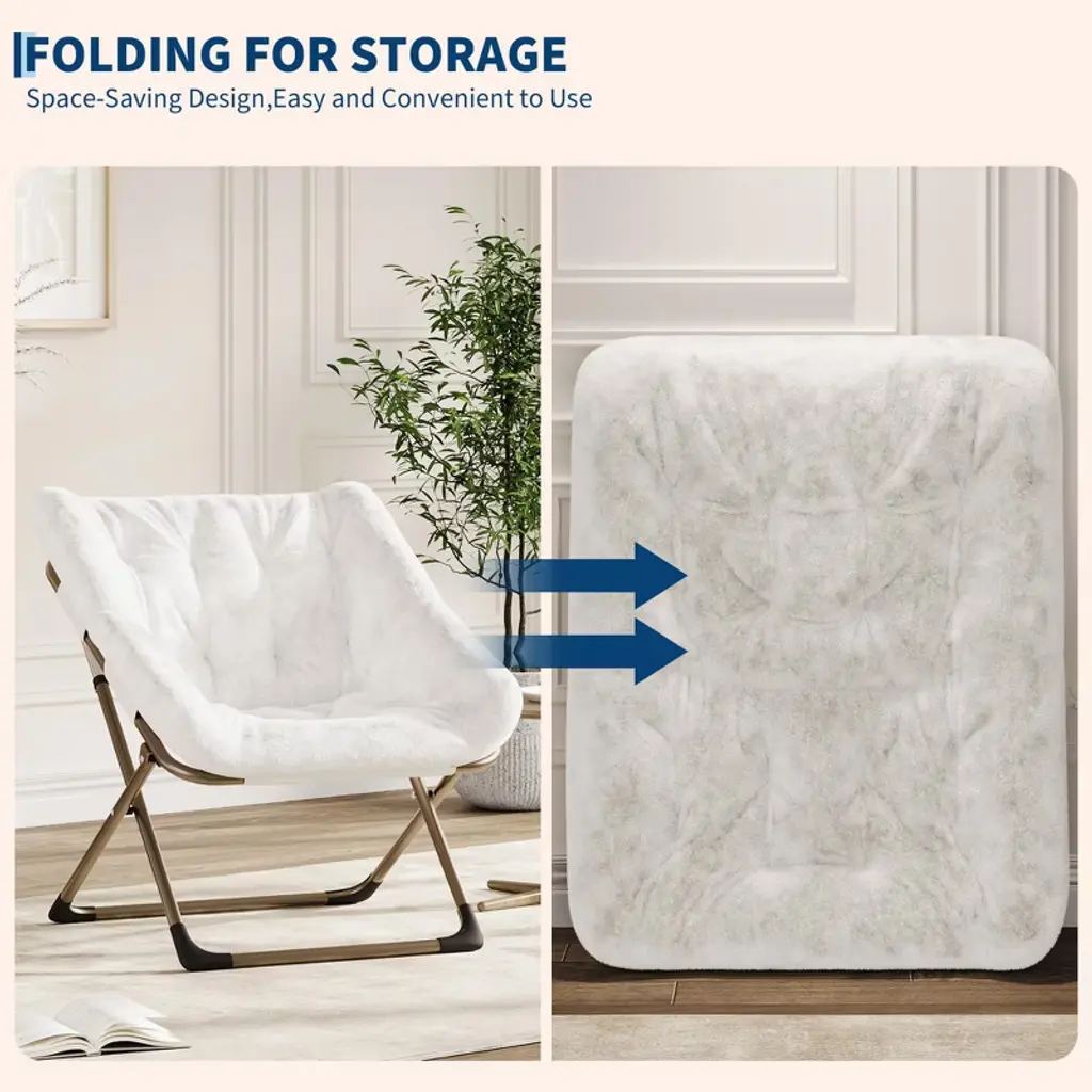 Gustowave Rabbit Fur Saucer Chair - Foldable Comfy Lounge Chair With Metal Frame For Kids, Teens & Adults - Cozy Indoor Lazy Sofa, White