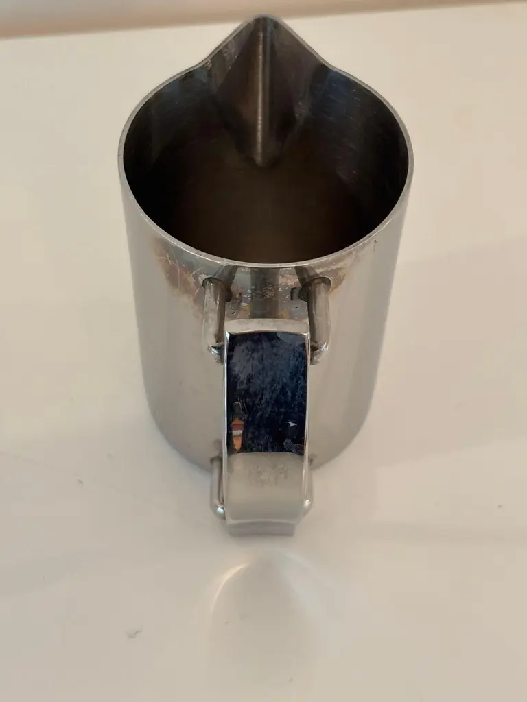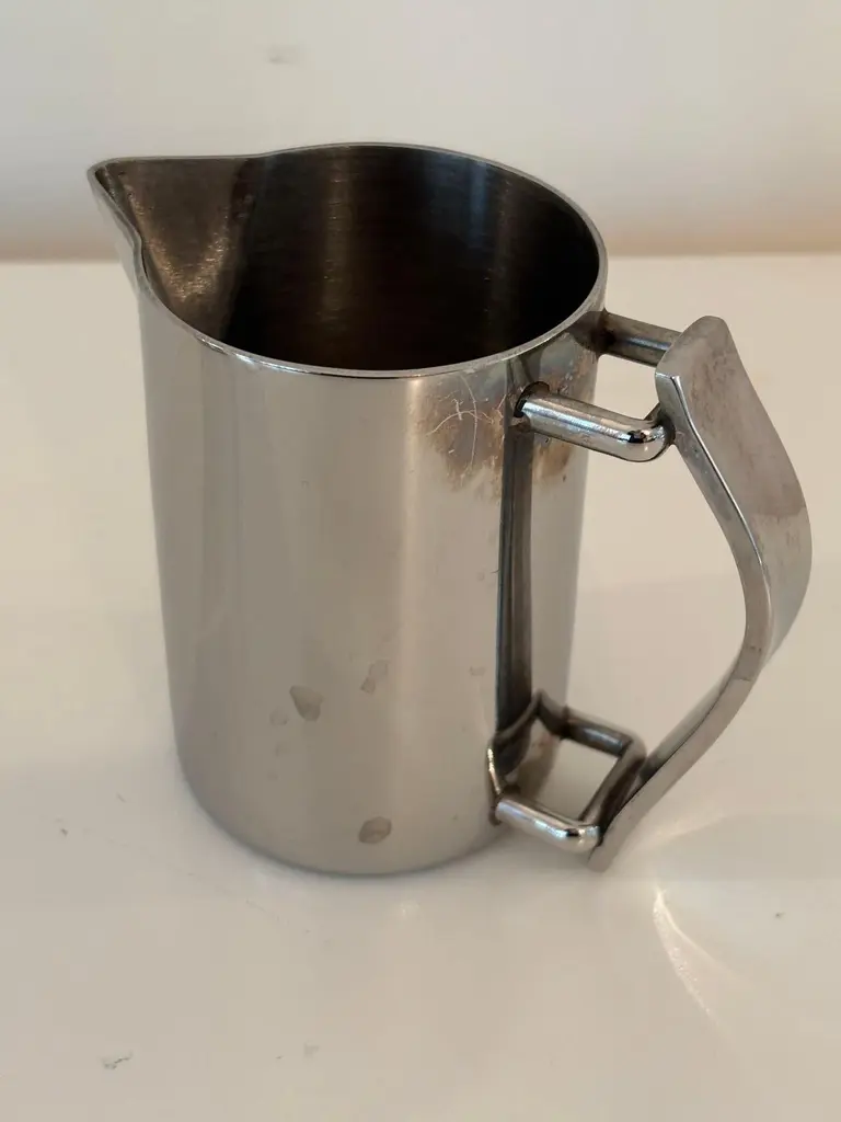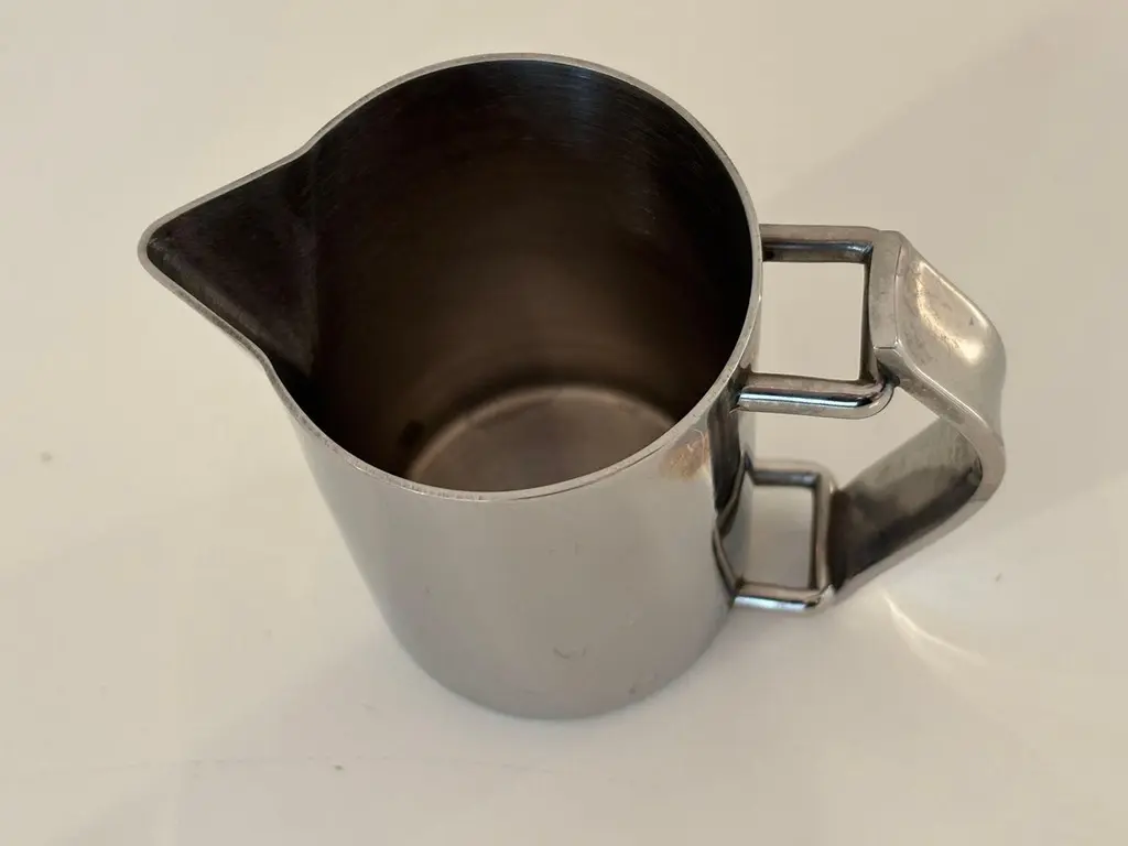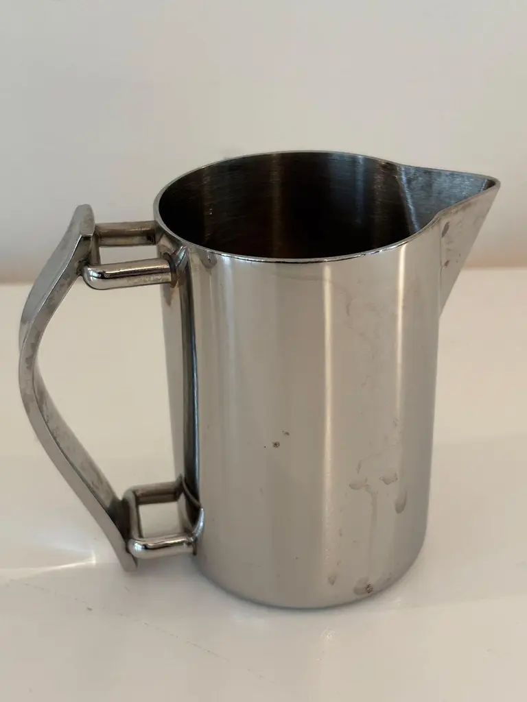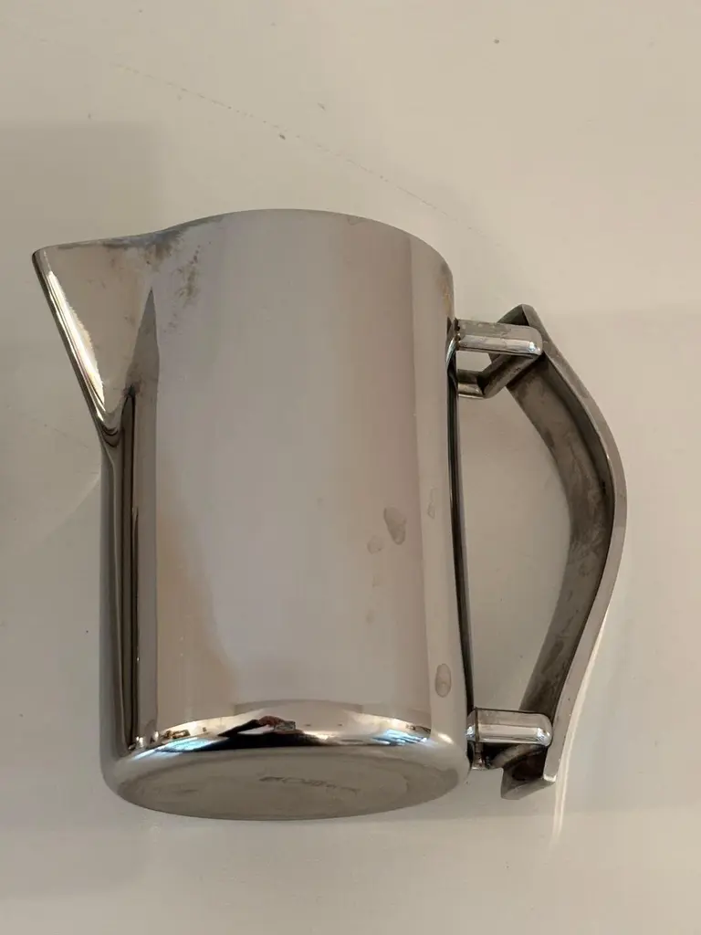 Guy Degrenne Paris Newport coffee pot or teapot and creamer set in stainless steel, Art Deco Inspired.Guy Degrenne Paris, the Newport model is an exclusive design for your breakfast, bar, buffet and table service needs.Set of one tea or coffee pot and one creamer jug by Guy Degrenne Paris, Marked.Made from 18-10 steel this contemporary and classic Art-Deco-inspired range goes perfectly with any porcelain collections.The Guy Degrenne metal stainless steel coffee or tea pot and the jug creamer accompanies the serving of coffee, tea or chocolate on the table of gourmets and gourmands.Dimensions: Pot: 7 in height x 5 in with handle x 3 in diameterDimensions: Creamer:4 in height x 4.5 with handle x 2.75 diameter. Specific collection model : NEWPORT CAFETERIE Material : Stainless steel Color : GreyThe Degrenne Group was founded by Guy Degrenne with a presence in more than 30 countries. Degrenne tableware collections make a statement. Since its beginnings, the same approach has characterized the brand Degrenne: Combine quality functionality and aesthetics to innovate with collections of porcelain dishes. Noble materials, elegant decorations, clean lines; Degrenne tableware collections can be combined to play with contrasts of shapes, colors, or materials to enhance the effect of food on your senses. Degrenne makes it possible to create magical moments at each meeting thanks to unique pieces of tableware that embody excellence.