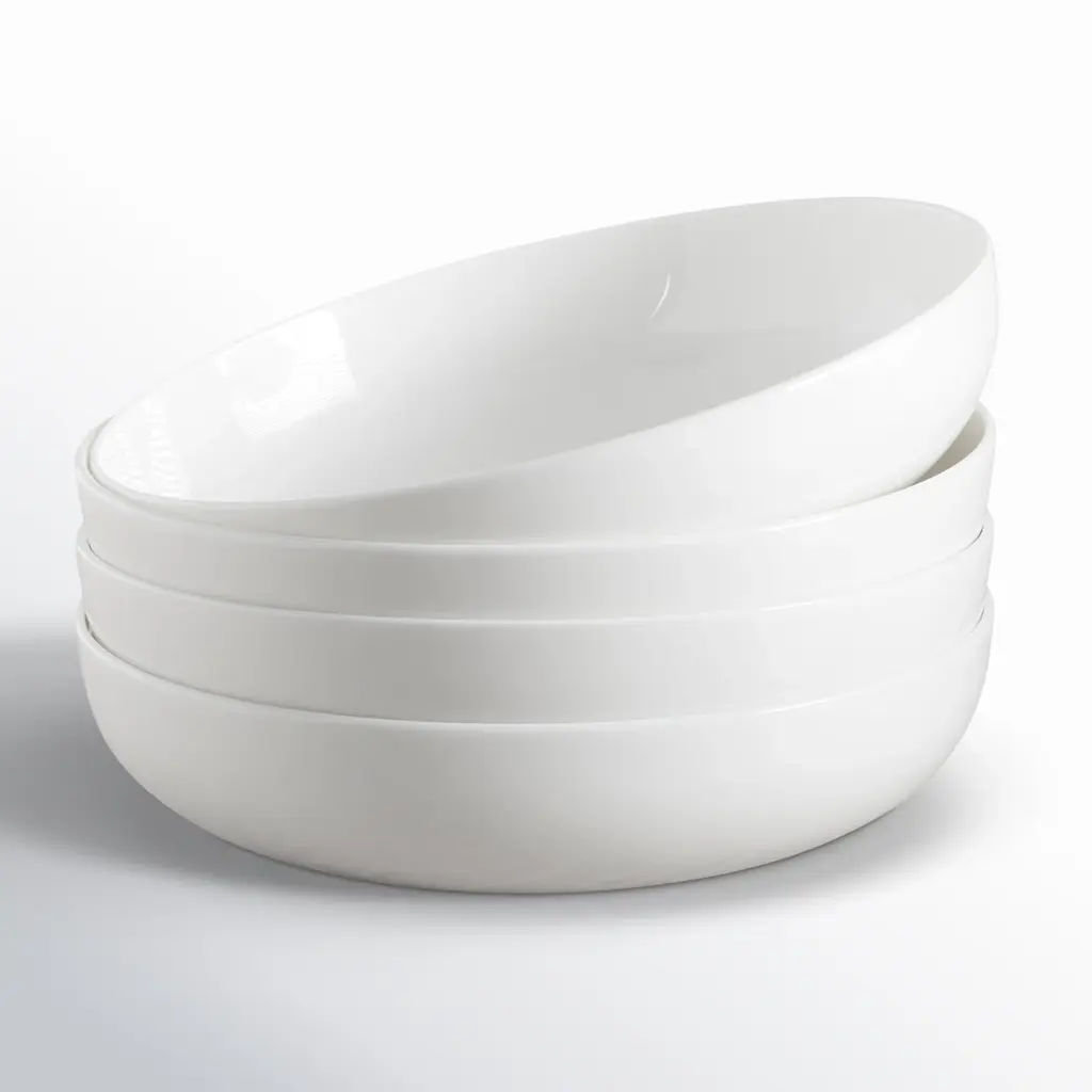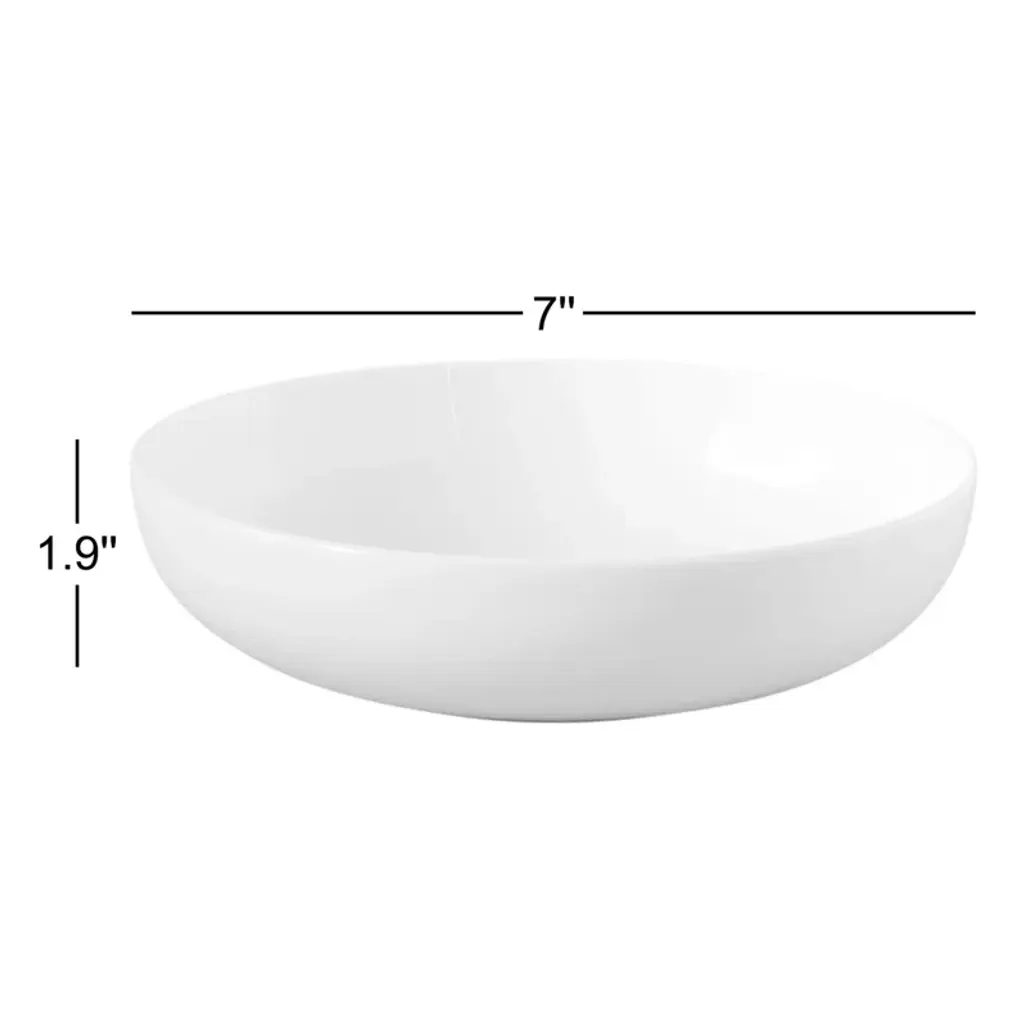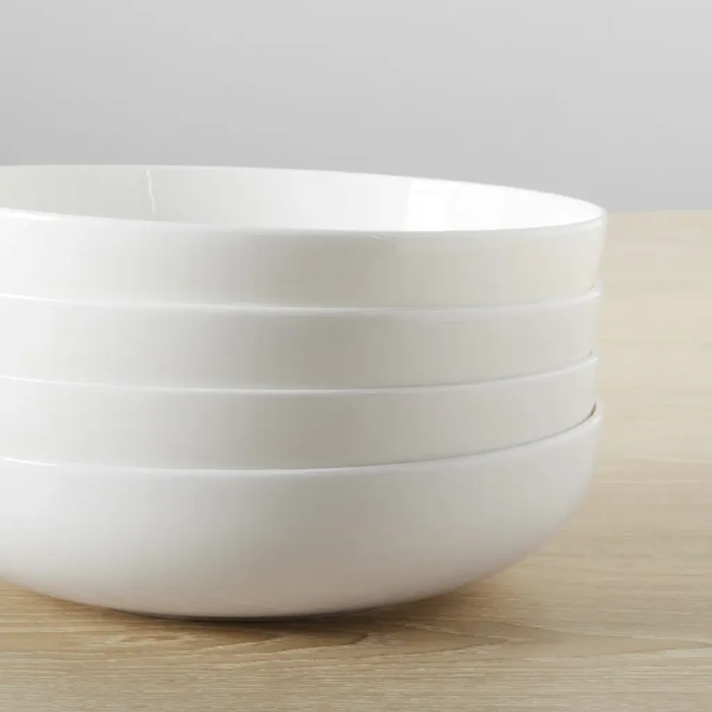 Elevate your dining table experience with this 4-piece set of cereal bowls. Each one is made from bone china and comes in a glossy white finish for an understated look that blends with the rest of your thoughtfully curated place settings. This collection of bowls is ideal for breakfast foods or smaller side salads. Plus, all four are safe to run through the dishwasher or use in the microwave. They're also stackable, so it's easy to place them in your cupboards or cabinets after cleaning them.