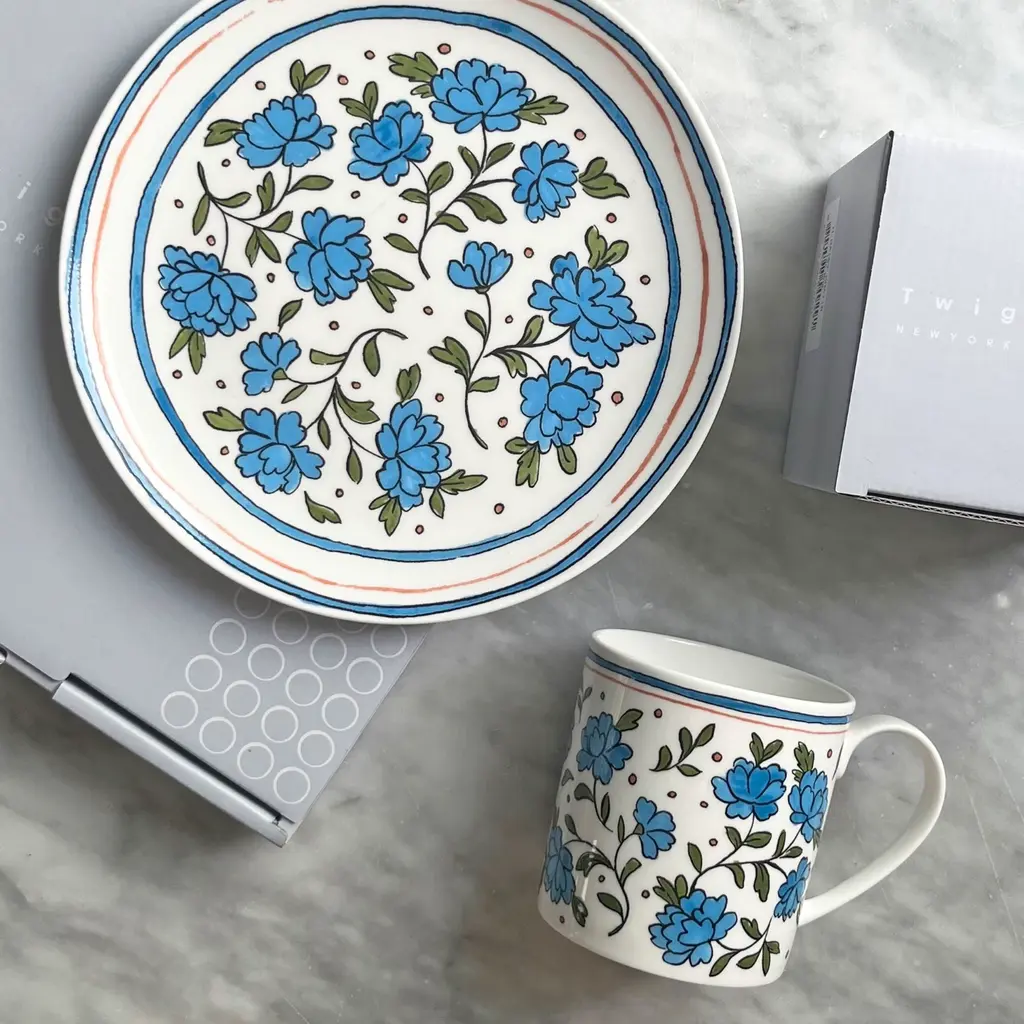 The Heritage Collection in collaboration with Molly Hatch. Inspired by the designs and heritage of 18th century European teacups, this collection features the items most often used in daily life. The most impressive facet of the collection is the vivid colors used. Molly's signature hand-drawn style shines in these lightly raised decals that give a texture to the surface. Modern classics in the Heritage Collection by Twig New York. Ideal for Coffee or Tea. One mug per box. Fine Bone China with hand applied decal.Ideal for Coffee or TeaOne mug per boxFine Bone China with hand applied decalMug: 3.25 in. x 3.5 in.Dishwasher & Microwave safeH.Bachelor Button Collection