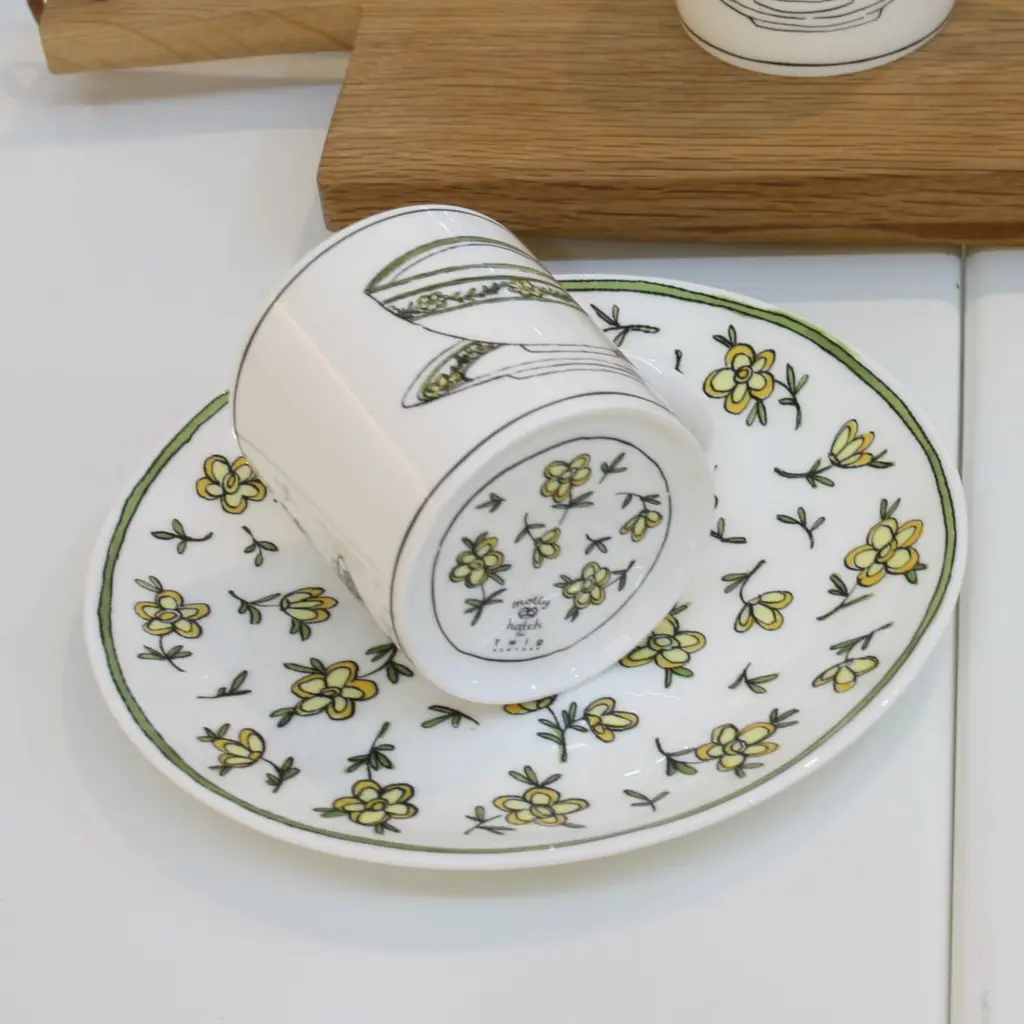 The Daisy Chain Collection by Twig New York in collaboration with Molly Hatch. The second collection to grow out of the successful Heritage Collection series, this collection gives you the opportunity to adorn your table with the floral yellows and greens of Daisy plants. In keeping with the ideas behind the Heritage Collection, the use of bold designs and patterns create something instantly unique that straddles both the modern and the classic. With a textured feel and designs on the bottom surfaces as well, the Daisy Chain Collection definitely catches the eye.