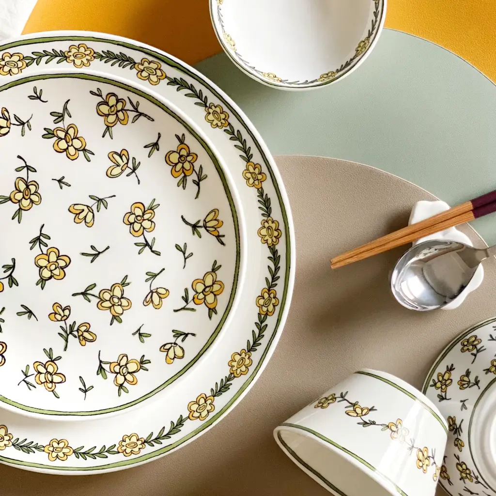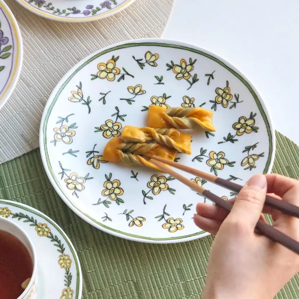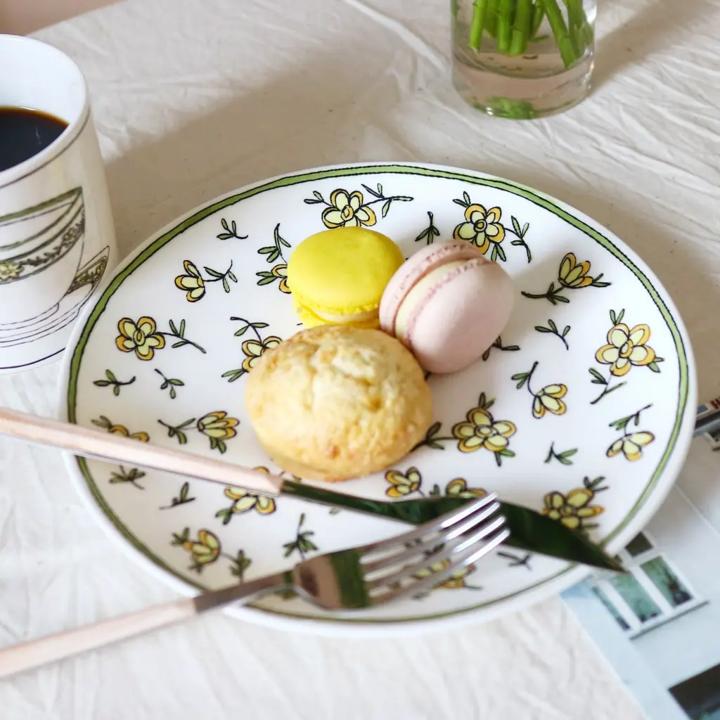 The Daisy Chain Collection by Twig New York in collaboration with Molly Hatch. The second collection to grow out of the successful Heritage Collection series, this collection gives you the opportunity to adorn your table with the floral yellows and greens of Daisy plants. In keeping with the ideas behind the Heritage Collection, the use of bold designs and patterns create something instantly unique that straddles both the modern and the classic. With a textured feel and designs on the bottom surfaces as well, the Daisy Chain Collection definitely catches the eye.Ideal for Salads and SnacksOne plate per boxFine Bone China with hand-applied decalPlate: 8.5 in. diameterDishwasher & Microwave safeH.Daisy Chain Collection