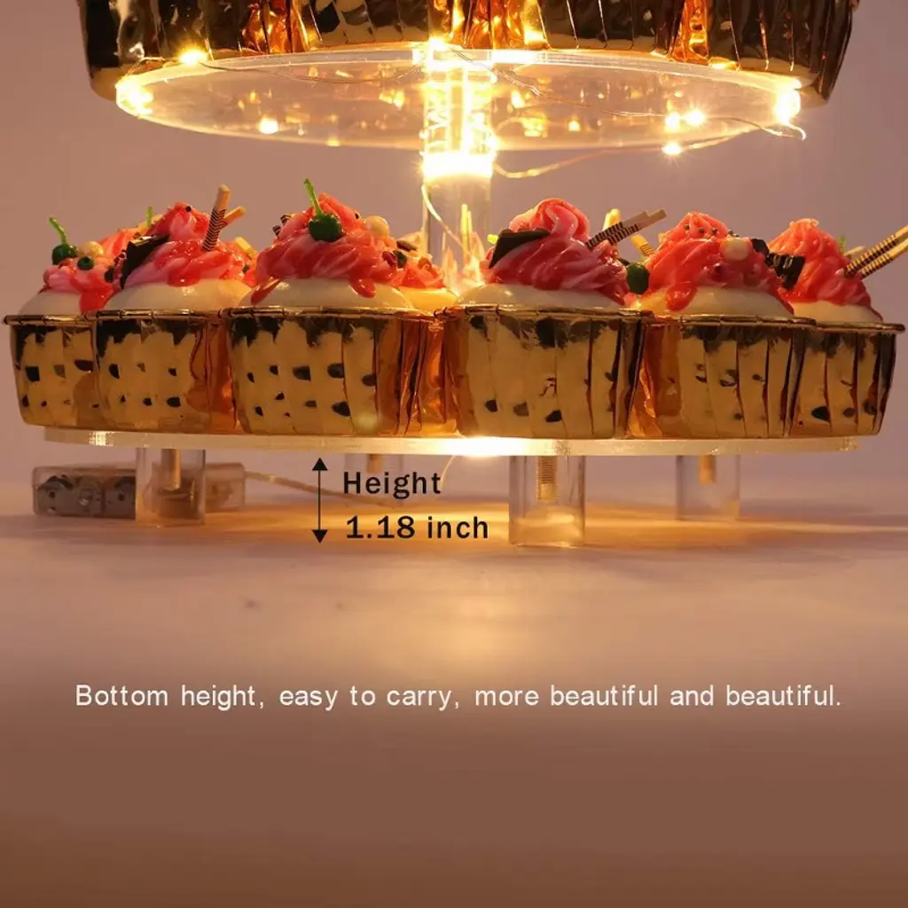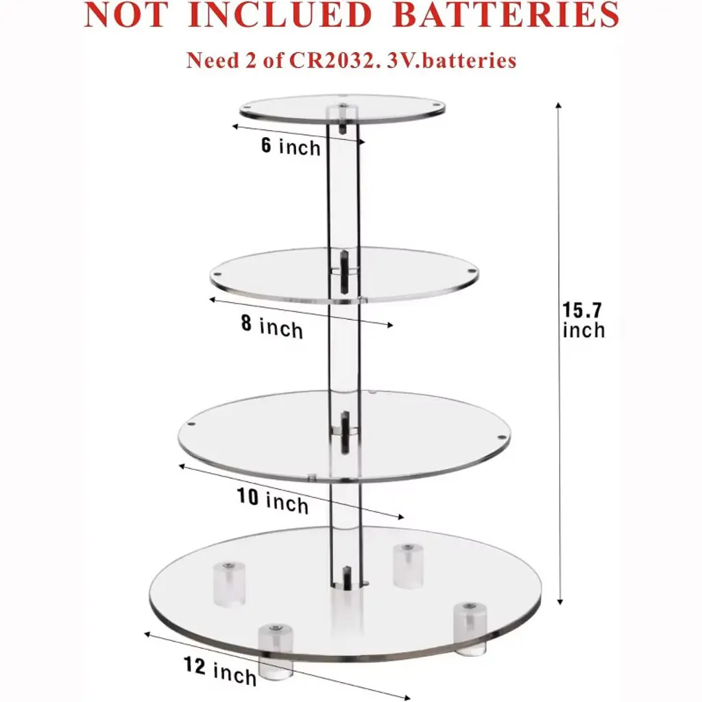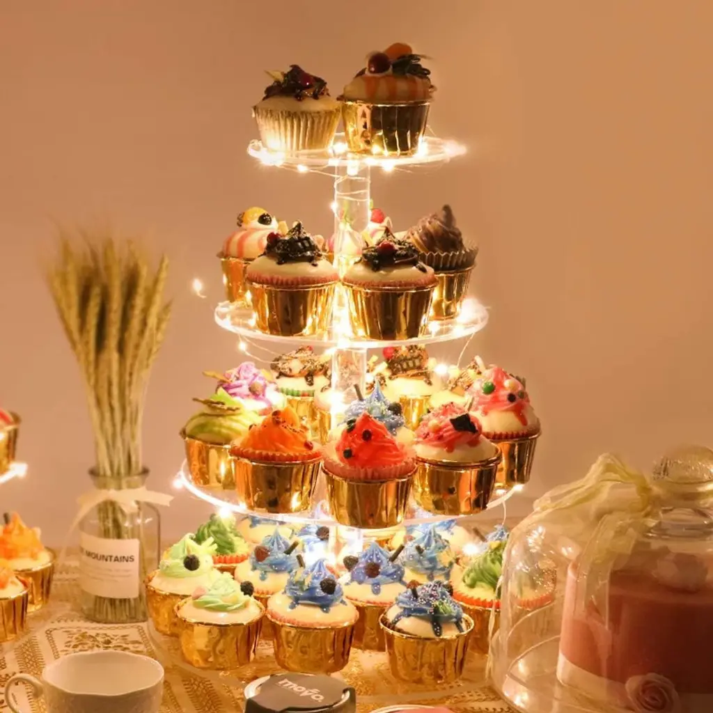 Searching for a special, exquisite way to showcase your cupcakes? Look no further! Our 4 Tier Acrylic Cupcake Stand blends European elegant design with practicality, turning weddings, anniversaries, birthdays, and candy bar setups into more romantic, memorable events—all with a stunning dessert display that shines, thanks to its pink LED glow. Crafted with premium 4mm thick acrylic, this stand is exceptionally solid and durable for repeated use. Its 4 acrylic plates (with 4” spacing between tiers) are fully removable, so you can customize the setup freely: remove a plate for taller treats, or keep all tiers to maximize holding space. The acrylic rods feature embedded copper nuts in the middle, keeping the stand perfectly straight and stable—no wobbling, even when loaded with treats. Plus, it’s generously sized: hold up to 52 cupcakes (2.5” diameter) or 12 lbs of pastries, perfect for feeding party guests. As a special bonus, we include a pink LED light string that adds a magical, romantic glow to your display—making your desserts and party decor feel extra charming. The stand also has a smooth, polished edge finish (no sharp corners!) and rubber dots on the bottom to prevent slipping, keeping your precious pastries safe and secure.