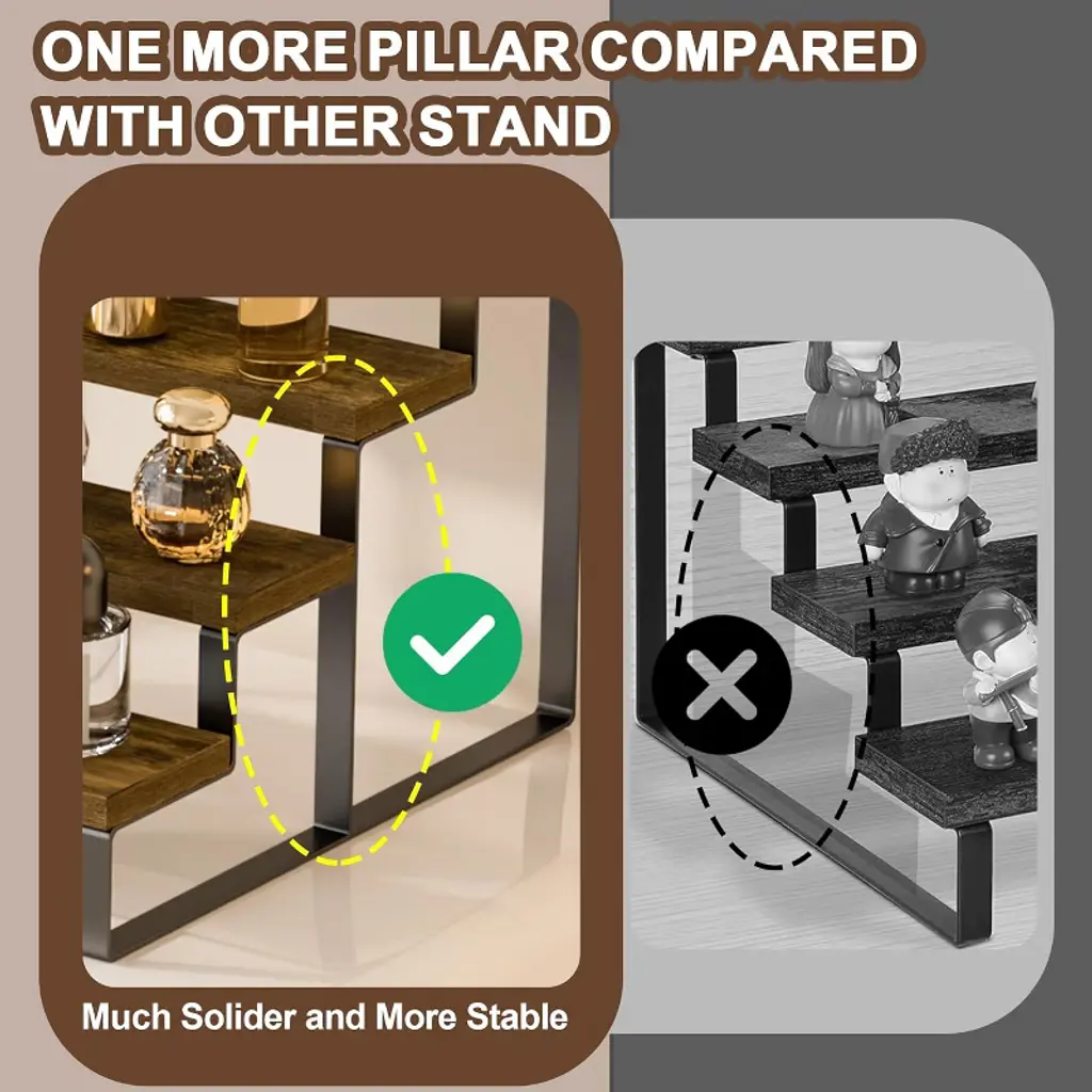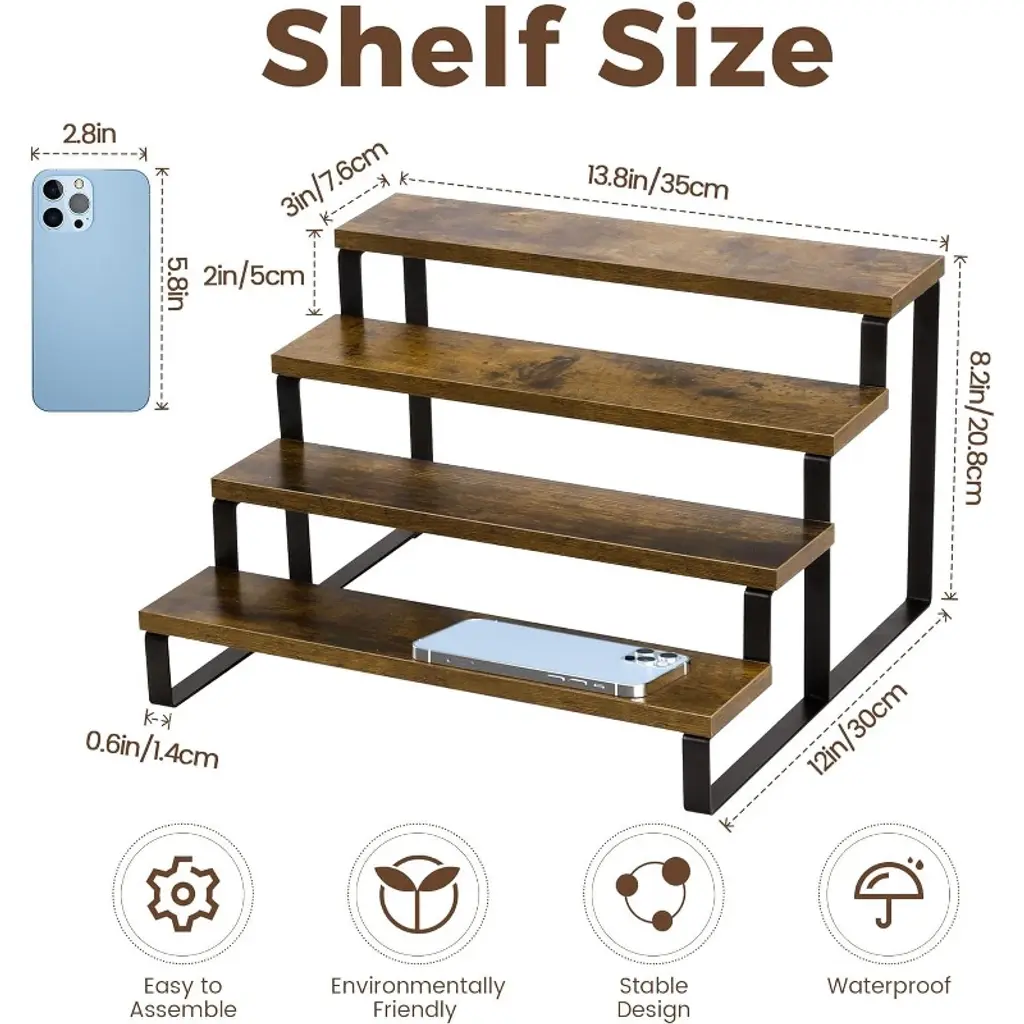 Elevate your decor and organization with this 4-Tier Rustic Wood Cupcake Stand—a stylish blend of farmhouse charm and practical design, perfect for Target shoppers. Crafted from thick rustic wood shelves and sleek black matte-finished metal, this stepped display riser delivers a chic, distinctive look while maximizing visibility and access to your items. Whether you’re showcasing cupcakes at a birthday party, organizing spices in the kitchen, or displaying perfumes and cosmetics on a dresser, this versatile stand adds both style and order to any space. Built with sturdy 12mm wood and heavy-duty metal framing, it’s ideal for home use, store displays, or special events.