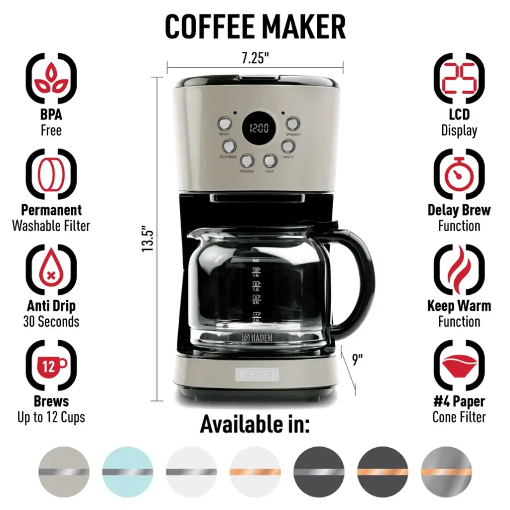 Haden Coffee Machine, 12 Cup Programmable Drip Coffee Maker