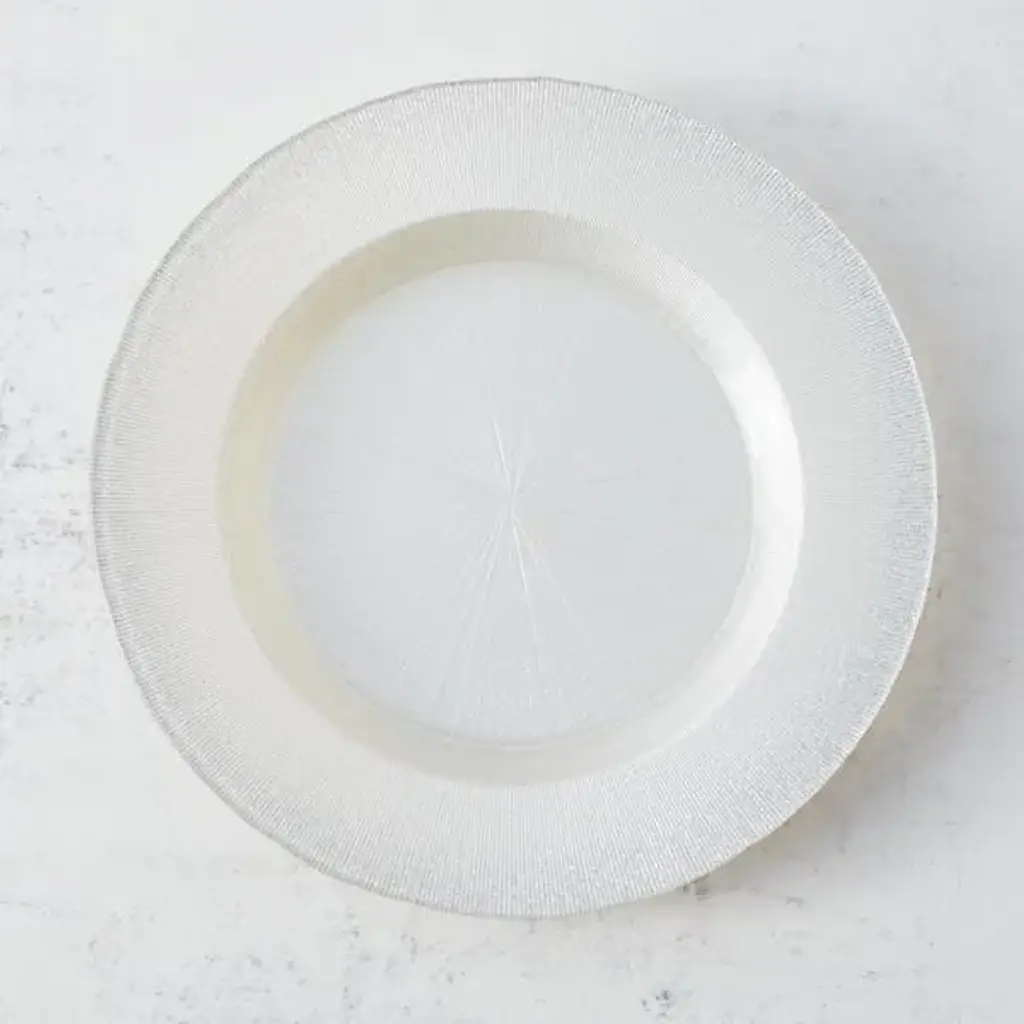 Add a sprinkle of sparkle to your dinner parties with the Halo Collection. Our ethereal design is fun and fresh, bringing a supernova of style to your table. Made from soda glass in several color options to mix and match, this dinnerware sold separately in sets of 4. Available in Blush, Champagne, and Silver with Chargers also available.