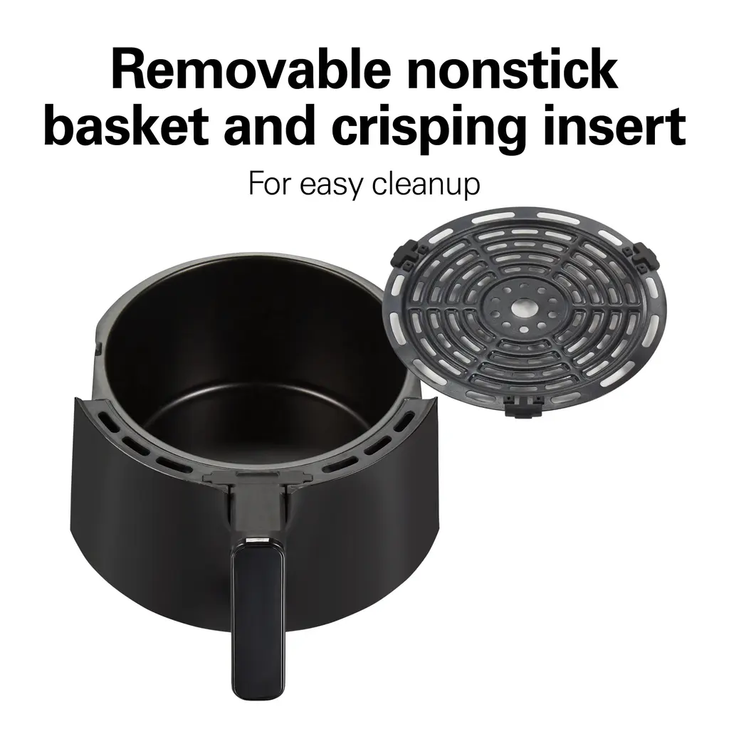 The Hamilton Beach® 3.7 Qt./3.5 Liter Digital Air Fryer will expertly air fry all your favorites and give you the crispy texture you love with little to no oil. It's easy to use and no preheating is necessary. Simply choose from 6 one-touch, pre-programmed settings for French fries, chicken, seafood, steak, baked goods and veggies. Your food will cook for the perfect amount of time and when cooking is done, an audible beep will alert you when food is ready. You can also customize air frying by selecting your preferred cooking time and temperature up to 400° F. From quick dinners to midnight snacks, the Hamilton Beach 3.7 Qt./3.5 Liter Digital Air Fryer is the perfect size for feeding up to 3 people. After cooking, the removable nonstick basket and crisping insert make cleanup easy.