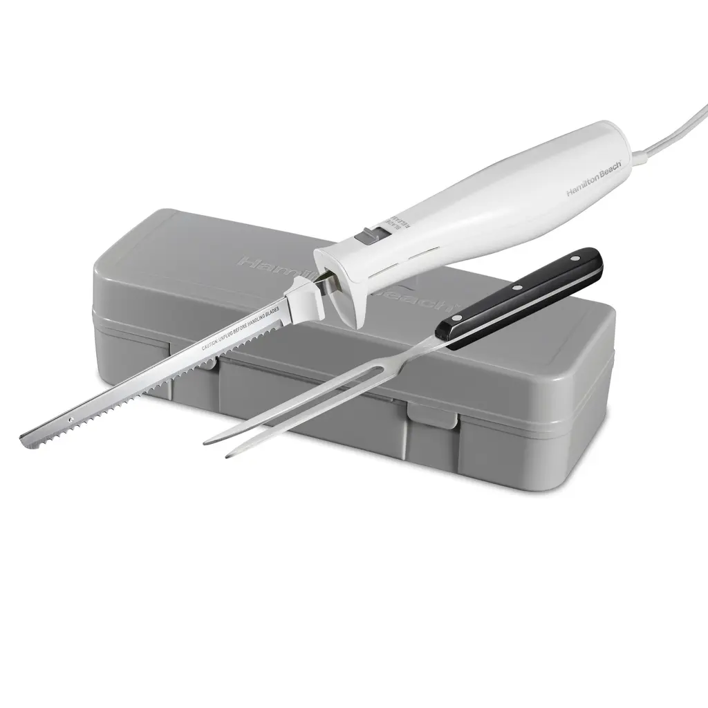 Hamilton Beach Electric Knife Set With Fork And Case - White