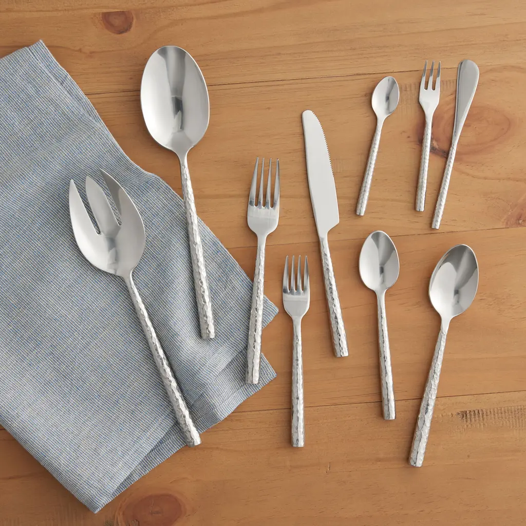 Formal or relaxed table settings shine brightly when the hammered texture of our stainless steel dinner knife catches the light. Comfortable in the hand with a balanced weight, these beautiful utensils are a joy to use.