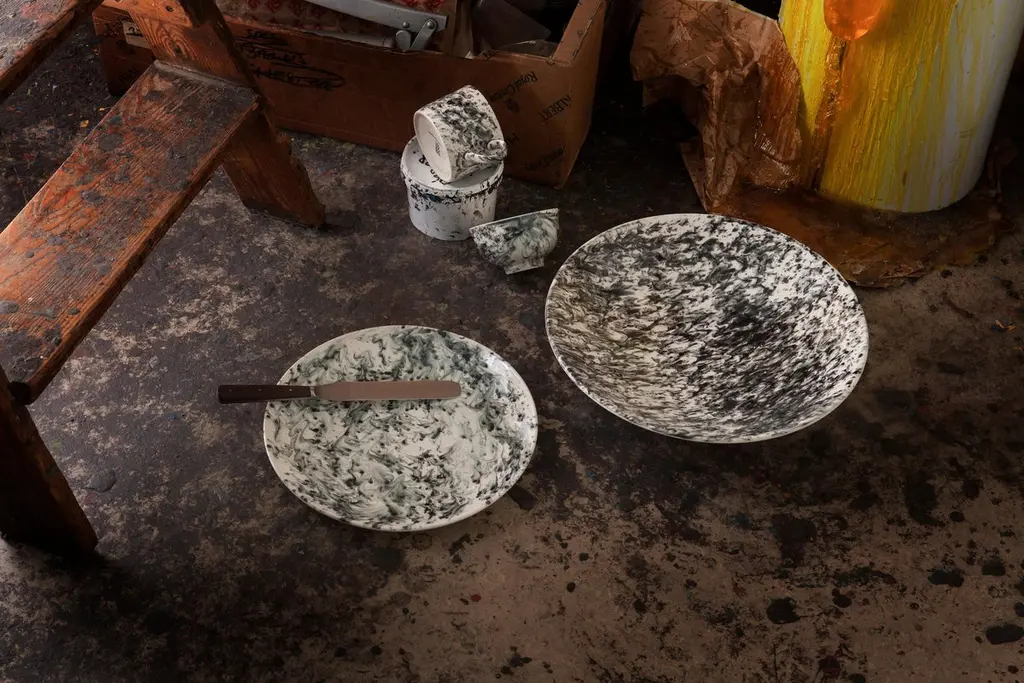 Slick, 1882 Ltd. Slick and Sleet by 1882 Ltd. with an extended vase collection by Queensberry Hunt is a collection of uniquely hand glazed items, a true testament to the skill of the Potter. So many factors make up the pattern of the glaze, from the heat of the piece to the weight of the glaze. The Potter works each piece individually making each item unique. Glaze, like ceramic, has a mind of its own.