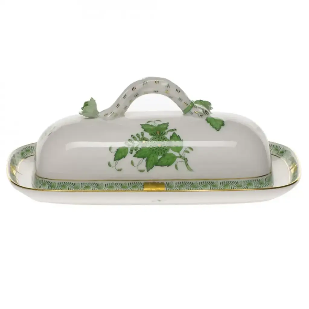 Hand-Painted Stoneware Butter Dish With Lemon Shaped Handle And Stripes, Multicolor