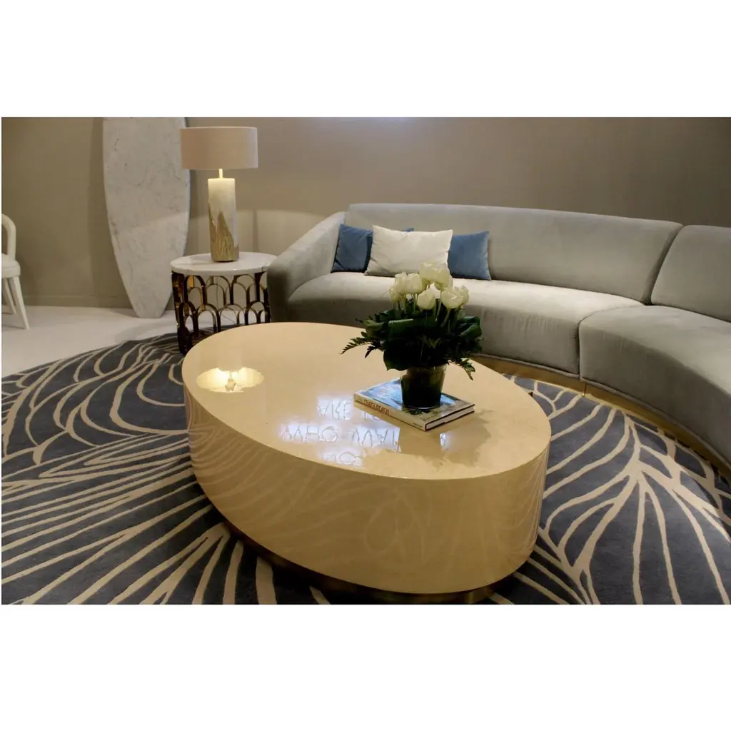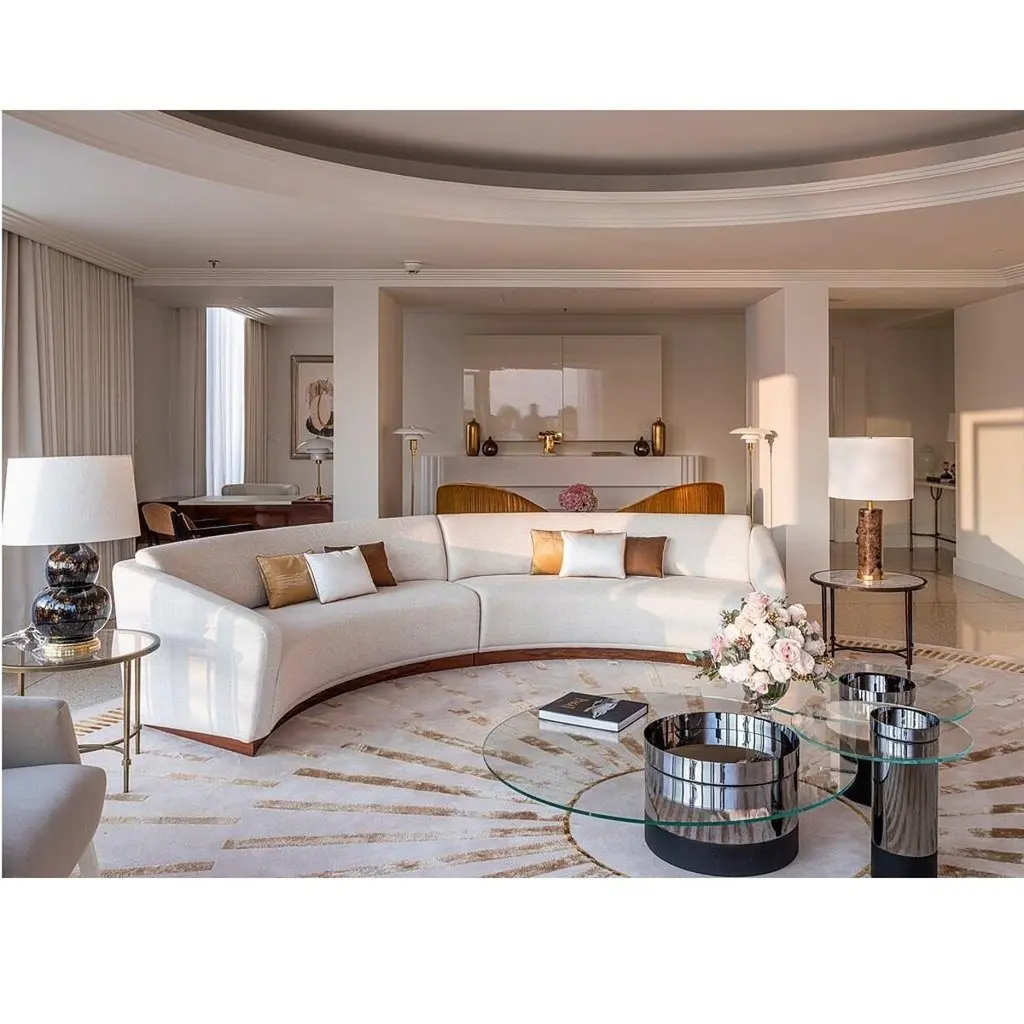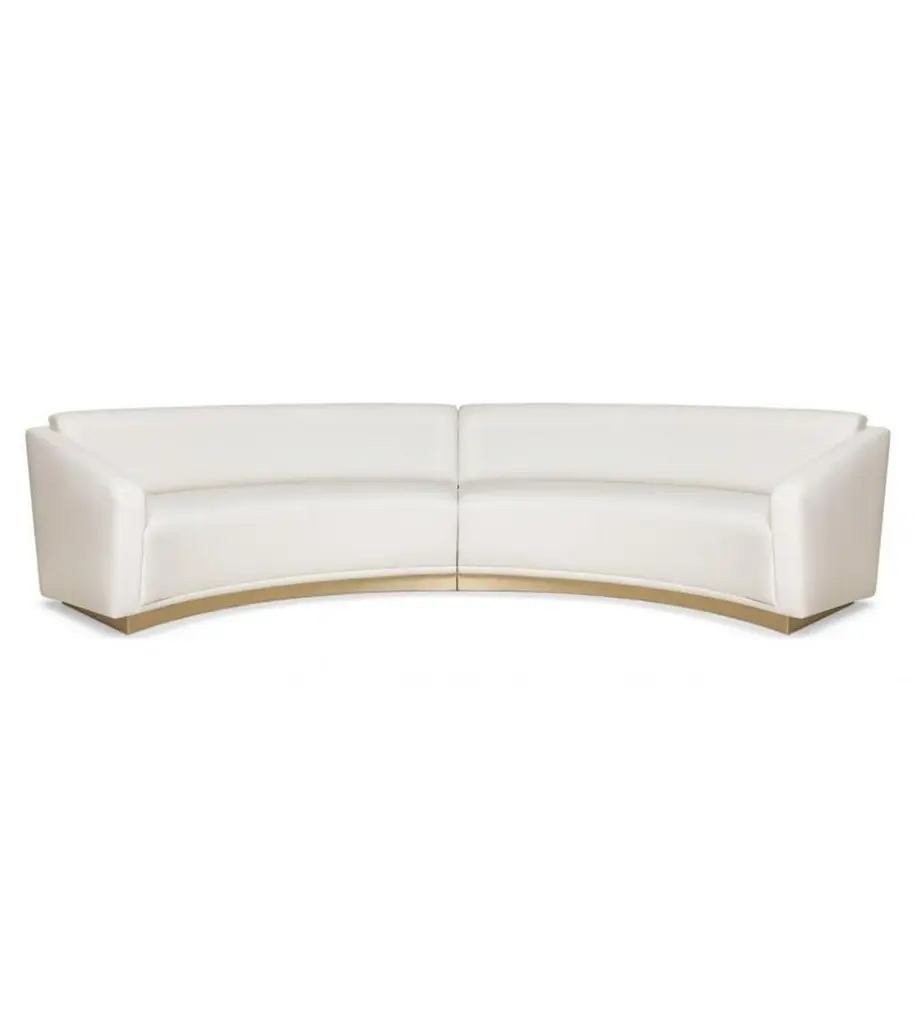Hand Tailored Curved Sofa In Stylish Brushed Brass Plate Footer