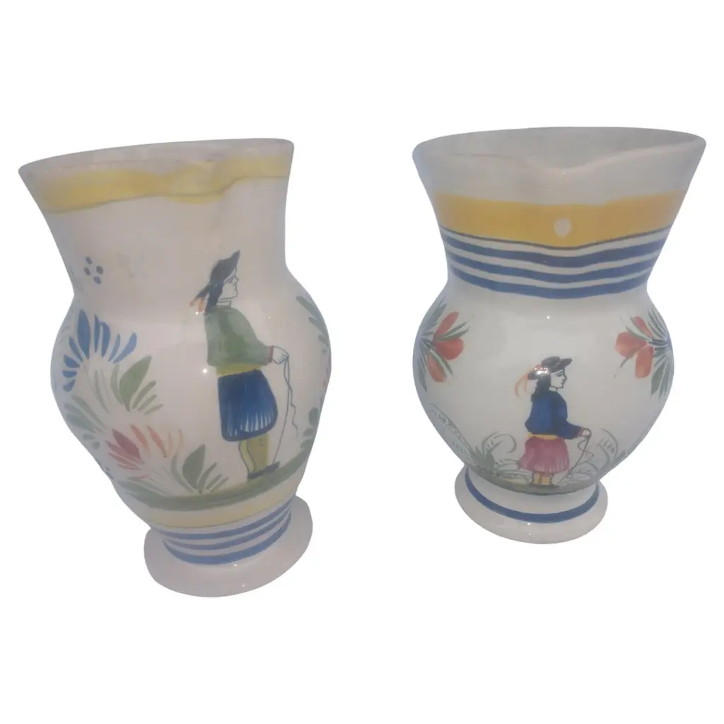 Handcrafted Antique Pitchers By Henriot Quimper Faience, France
