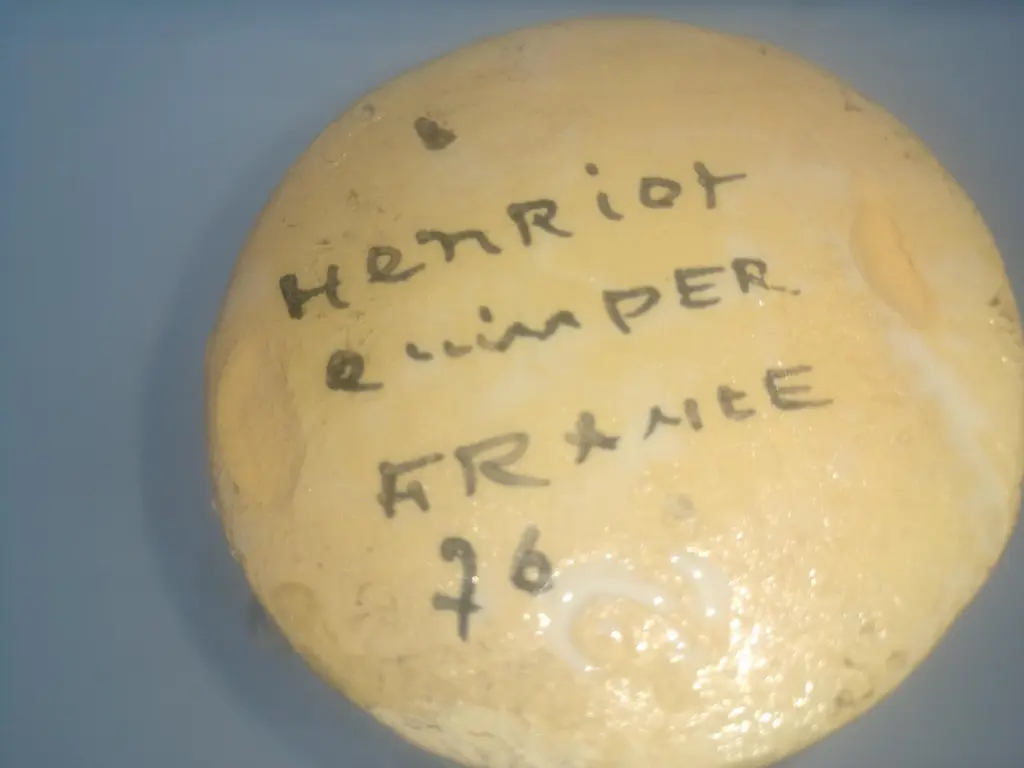 Beautiful sculptural forms by Henriot Quimper C1930. Hand thrown and hand painted, both feature the Breton man in his customary ware. In excellent vintage condition with minimal wear, no chips or cracks. Form on the right is 6H x 6W x 4D, Form on the left is 6.25H x 5W x 3.75D.Priced and sold individually.