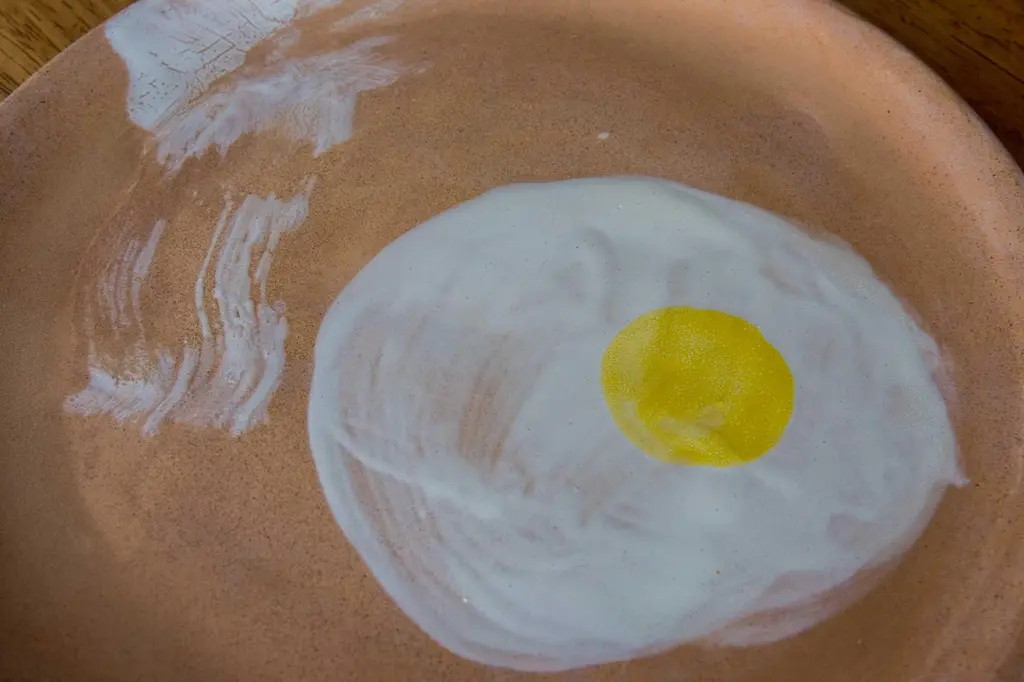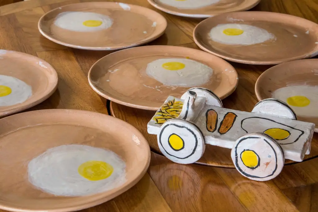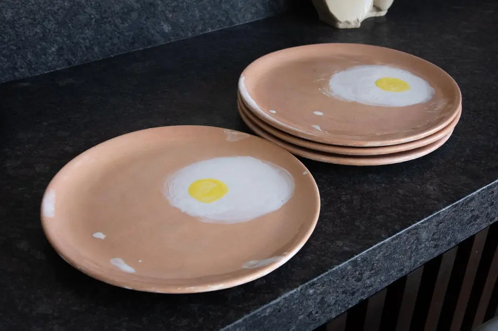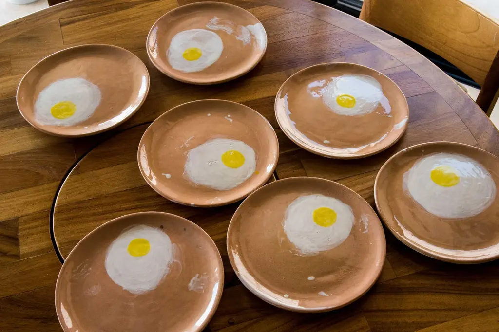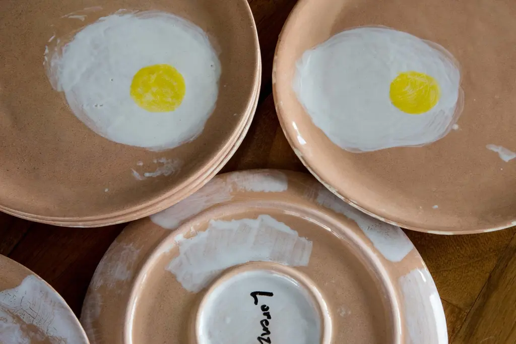 Enhance your space with this elegant ceramic egg plate by Mexican artist Lorenzo Lorenzzo. Handcrafted in San Miguel de Allende, Guanajuato, this versatile piece features a refined egg motif inspired by the art of breakfast. Designed for both dining and decoration, it offers functional tableware that doubles as a striking art object.Features:•Handcrafted by Lorenzo Lorenzzo in San Miguel de Allende, Mexico•Modern egg design inspired by breakfast aesthetics•Versatile use as functional tableware or decorative accent•Blends contemporary style with traditional craftsmanshipElevate your dining experience and home décor with this uniquely elegant ceramic plate that embodies modern Mexican artistry. Set includes 2 plates.