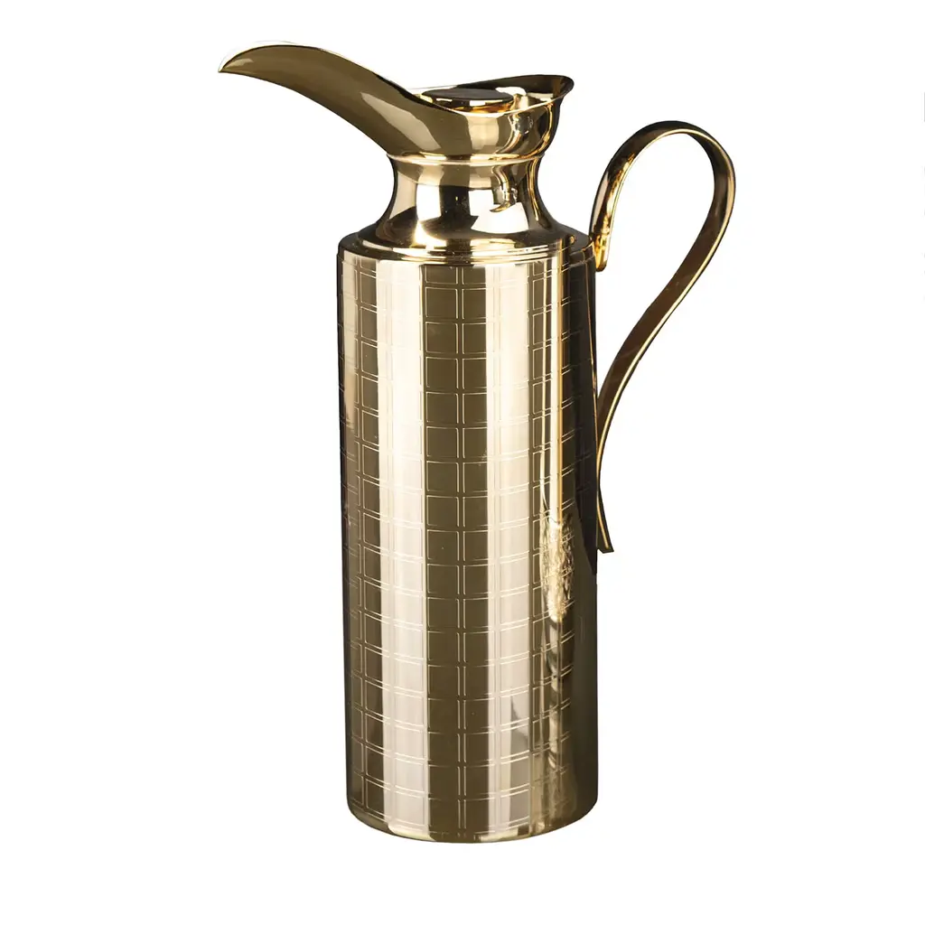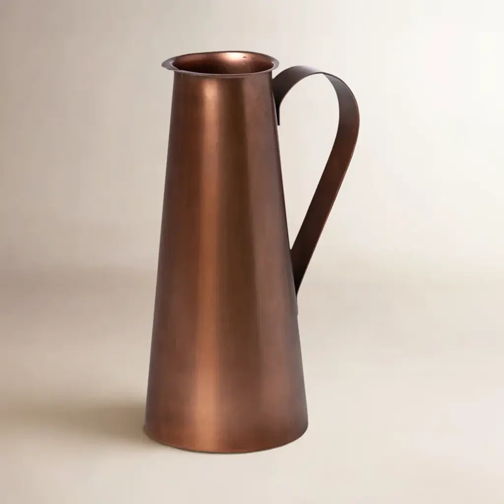 Add elegance to your table with this Handcrafted Copper Water Pitcher, designed to bring both style and functionality to your dining experience. Crafted from 100% pure copper, it boasts a polished finish that enhances its timeless appeal. The tin-lined interior ensures safe use with water, juices, or other beverages, including acidic liquids. Its ergonomic handle and precision spout allow for effortless pouring, making it perfect for everyday hydration or serving guests during special occasions. This pitcher is a stunning blend of artisanal craftsmanship and practicality.