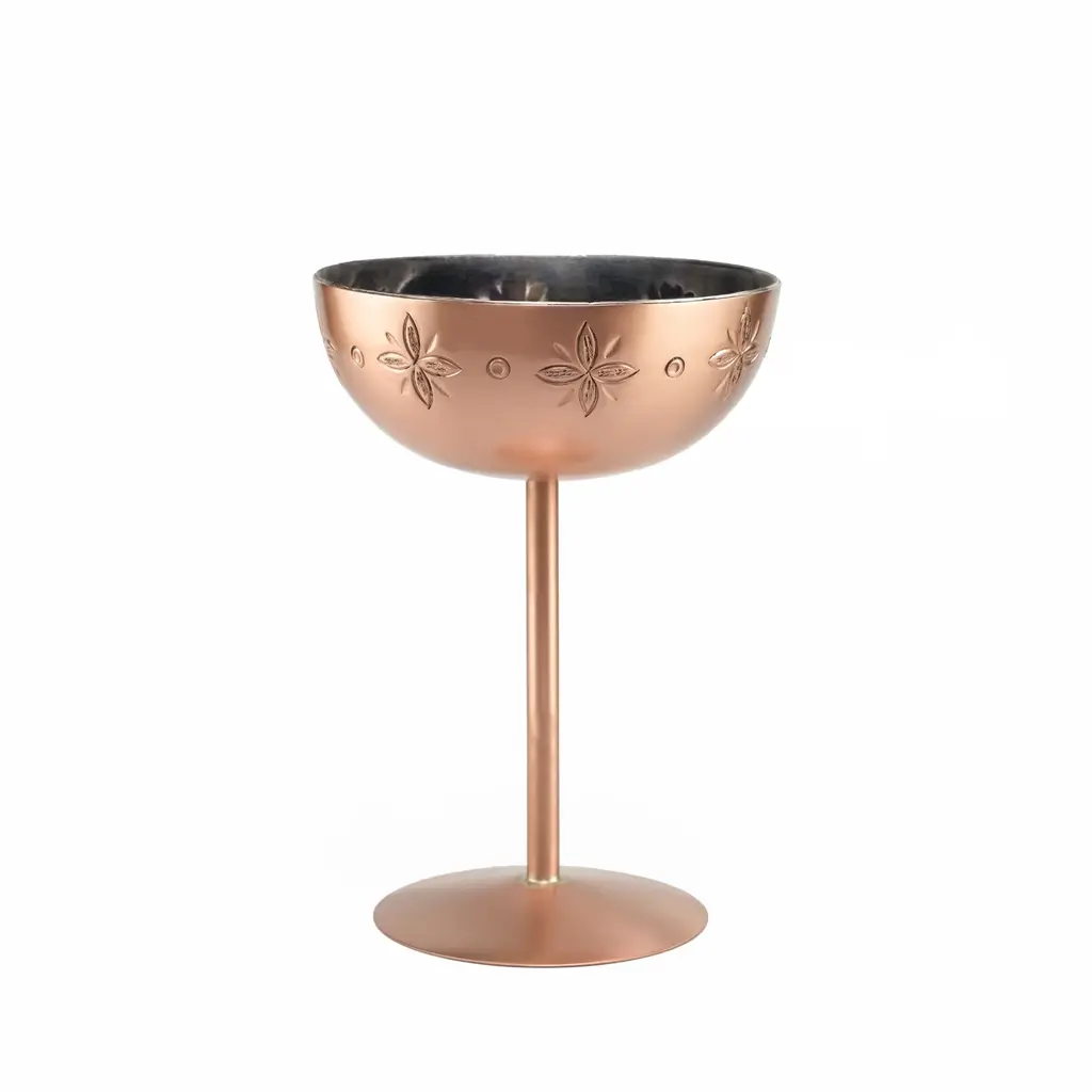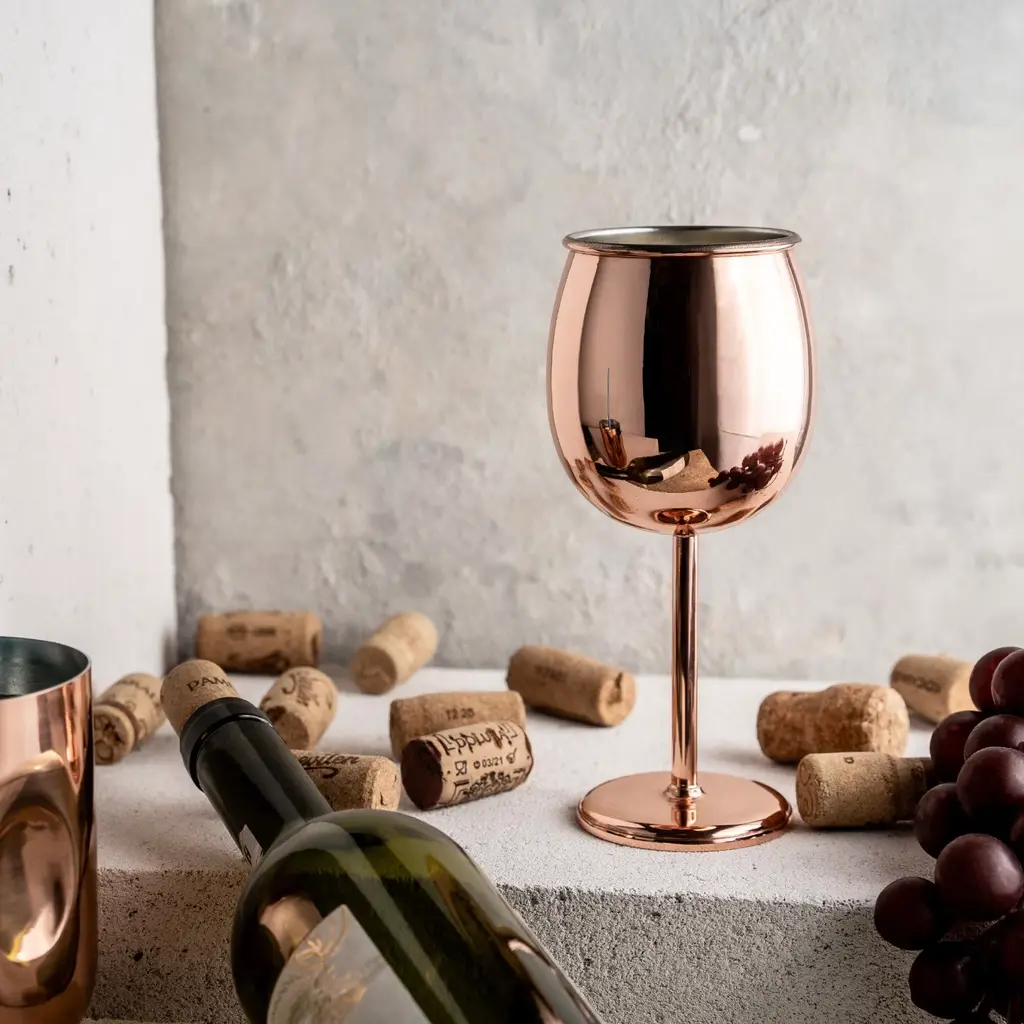 Enjoy your wine in style with this handcrafted copper goblet, designed for elegance and functionality. Featuring a polished exterior and a food-safe tin lining, this goblet ensures your beverages remain safe to drink while retaining the luxurious appeal of pure copper. The tin interior prevents direct contact with copper, offering a smooth and safe drinking experience. Perfect for serving both red and white wines, it keeps your drink at an ideal temperature for longer. Whether for a cozy dinner or a festive celebration, this timeless piece is a must-have for elevating any occasion.