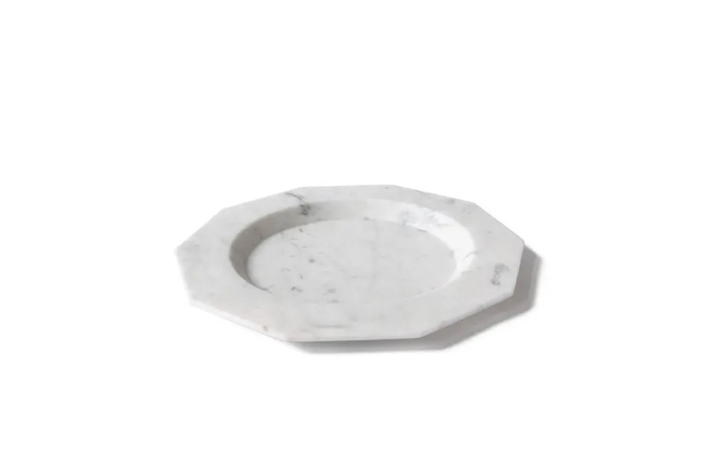 Big dinner plate in satin Arabescato marble.Each piece is in a way unique (every marble block is different in veins and shades) and handmade by Italian artisans specialized over generations in processing marble. Slight variations in shape, color and size are to be considered a guarantee of an handmade creation. Important: Do not use lemon or vinegar on it, clean only with water and natural soap (like Marseilles soap), do not put in dishwasher. This object gives a distinct touch to your house, kitchen and table, to your office and can be a sophisticated and original gift; you can surprise the guests by telling its story.