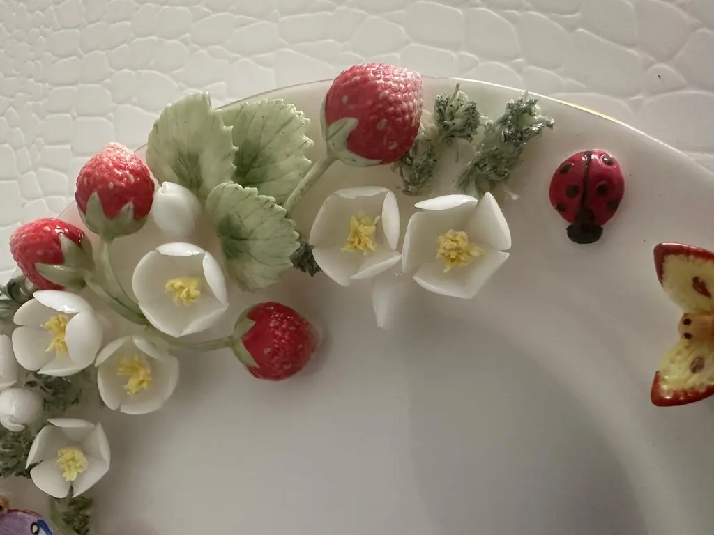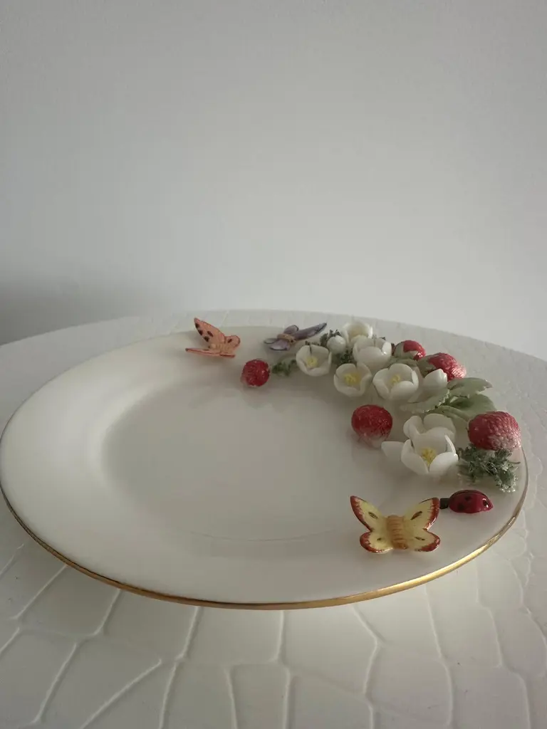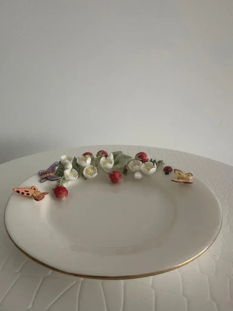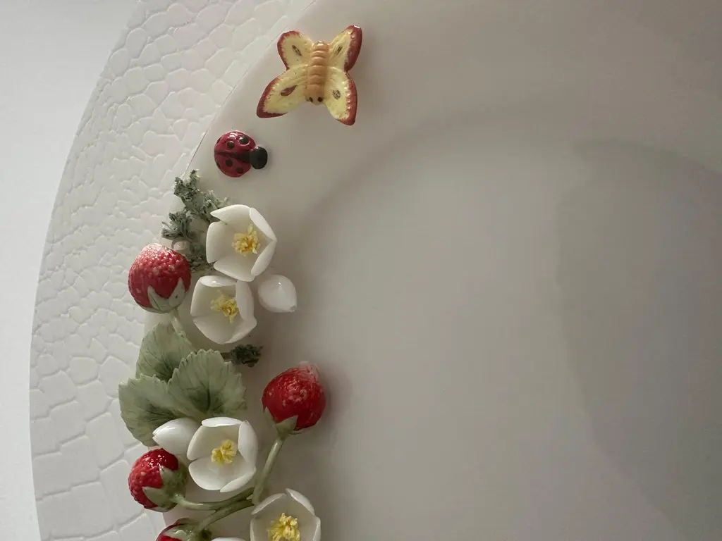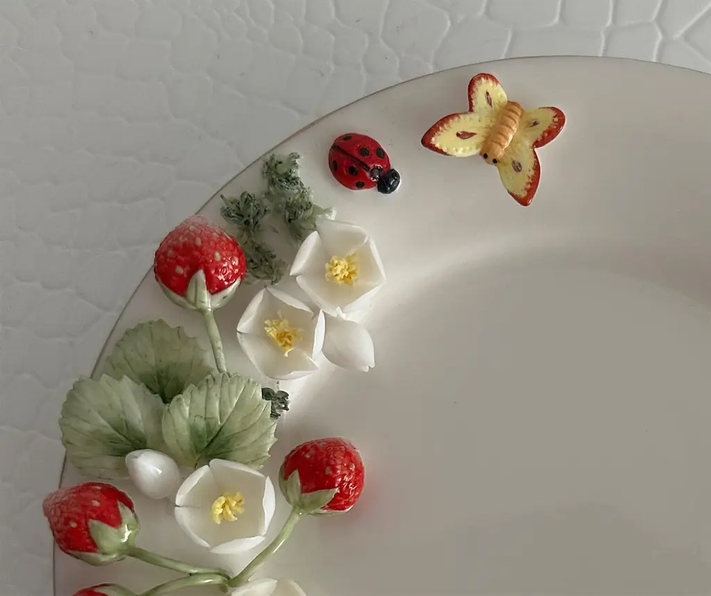 Handmade Relief Moulding Porcelain Decorative Wild Strawberries Design PlateThe three-dimensional design technique on porcelain, using relief moulding, involves creating a raised or sculpted design on a flat surface by adding or removing clay. This technique can be used to create decorative elements or artistic designs on porcelain pieces. There are various approaches, including applying clay to create raised areas (additive) or carving away portions to create depressions (subtractive). The artist creates a composition of their naturalistic Wild Strawberries Design, bringing nature's creations to life in porcelain as if brought from the forest. The plate created in a romantic style represents a collector's and decorative class object, for those who collect unusual and rarely seen things. Made in Italy by a special bespoke order after Alexander's Collection original design.