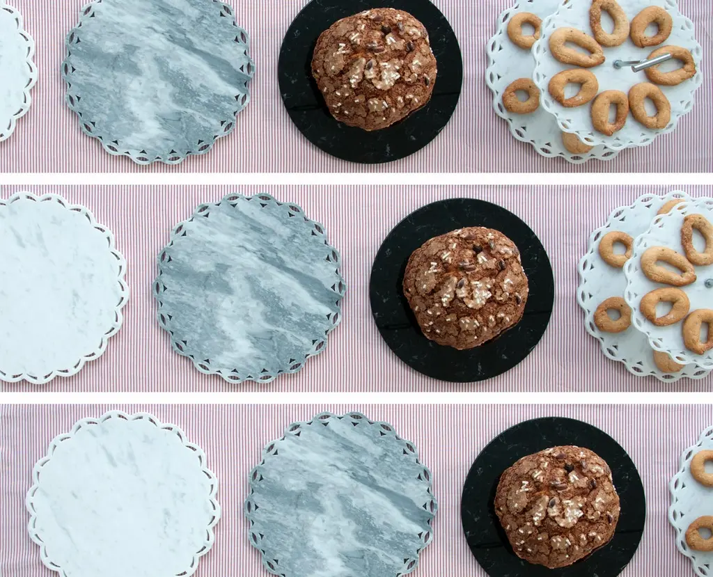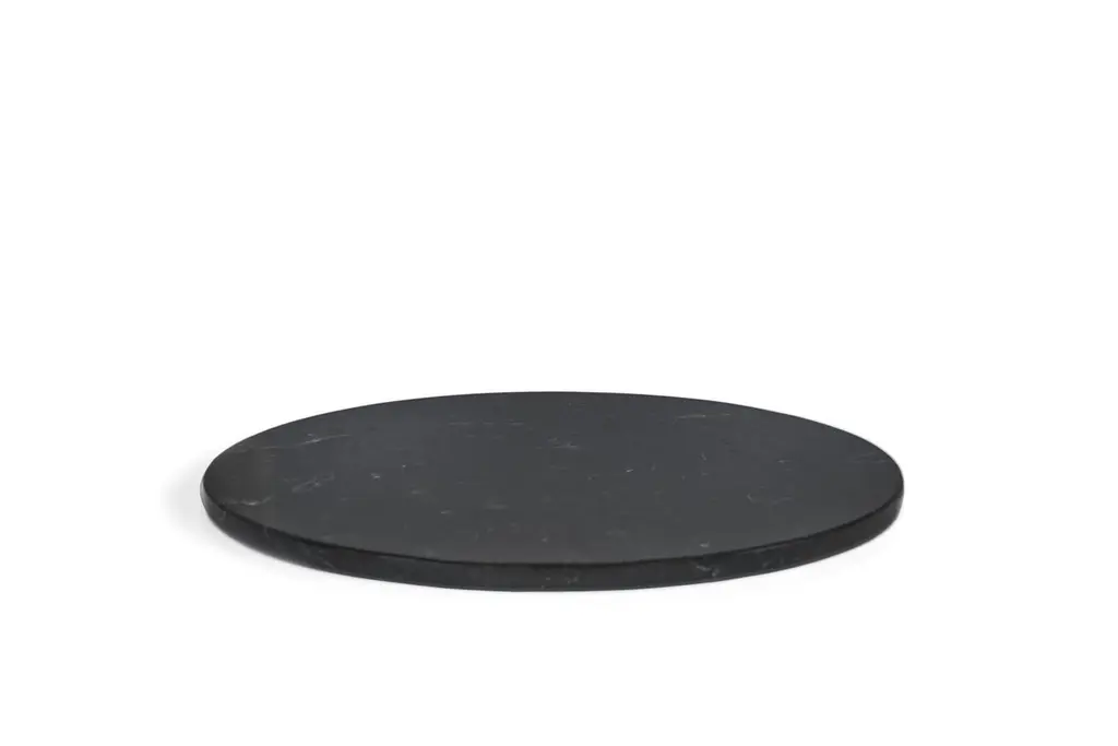 Rounded black Marquina marble cheese plate. Each piece is in a way unique (every marble block is different in veins and shades) and handmade by Italian artisans specialized over generations in processing marble. Slight variations in shape, color and size are to be considered a guarantee of an handmade creation.Important: Do not use lemon or vinegar on it, clean only with water and natural soap (like Marseilles soap), do not put in dishwasher.This object gives a distinct touch to your house, and can be used in the kitchen and on the table; you can surprise the guests by telling its story.